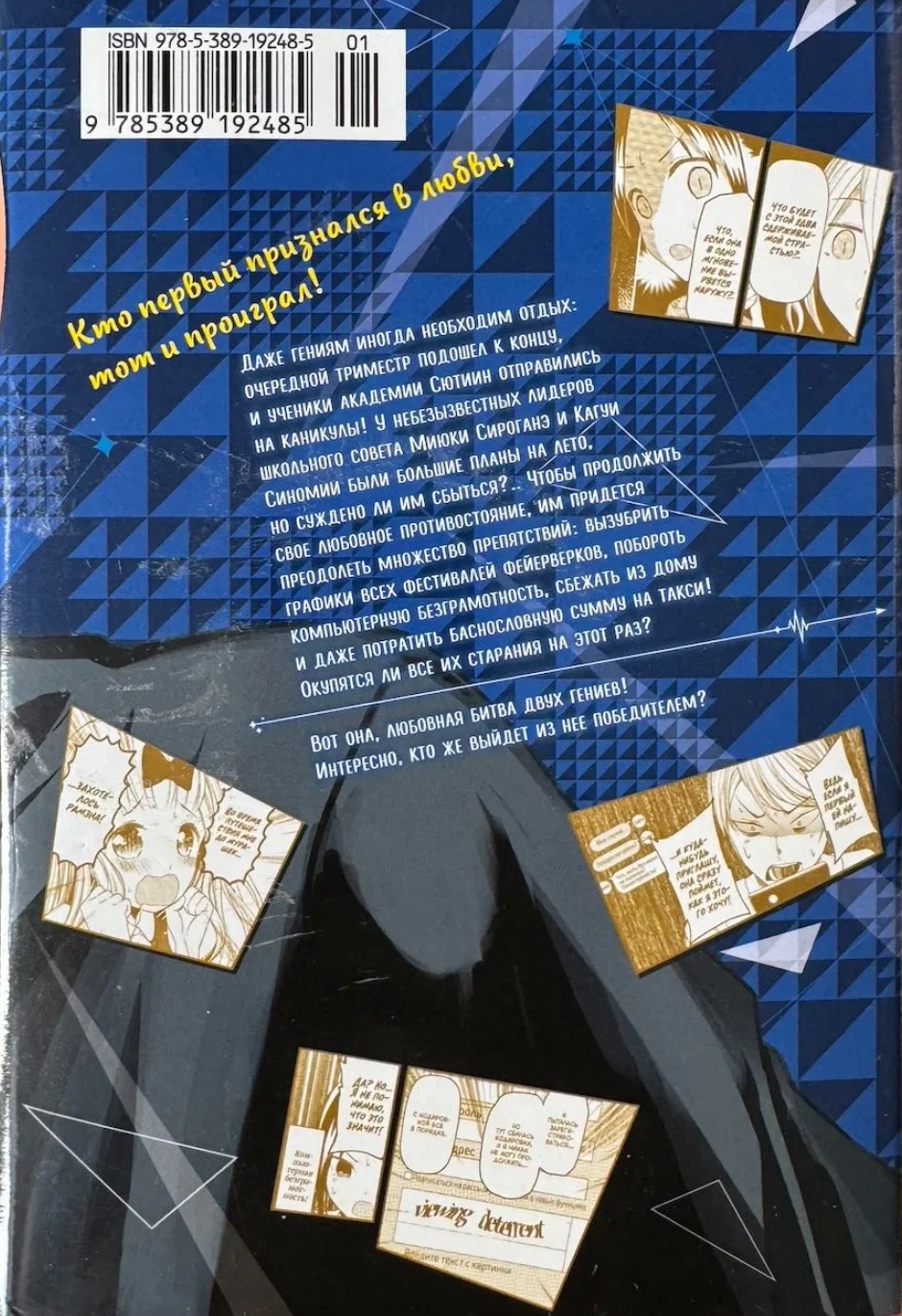 Pat ģēnijiem dažreiz ir nepieciešams pārtraukums: vēl viens semestris ir beidzies, un Šučiinas akadēmijas studenti ir atvaļinājumā! Bēdīgi slavenajām studentu padomes līderēm Mijuki Široganei un Kagujai Šinomijai bija lieli plāni vasarai, bet vai tie piepildīsies? Lai turpinātu savu mīlas sāncensību, viņiem būs jāpārvar neskaitāmi šķēršļi: jāiegaumē visu uguņošanas festivālu grafiki, jāpārvar datorprasmes, jātērē milzīgas summas taksometriem un pat jāaizbēg no mājām! Vai šoreiz visi viņu centieni atmaksāsies?