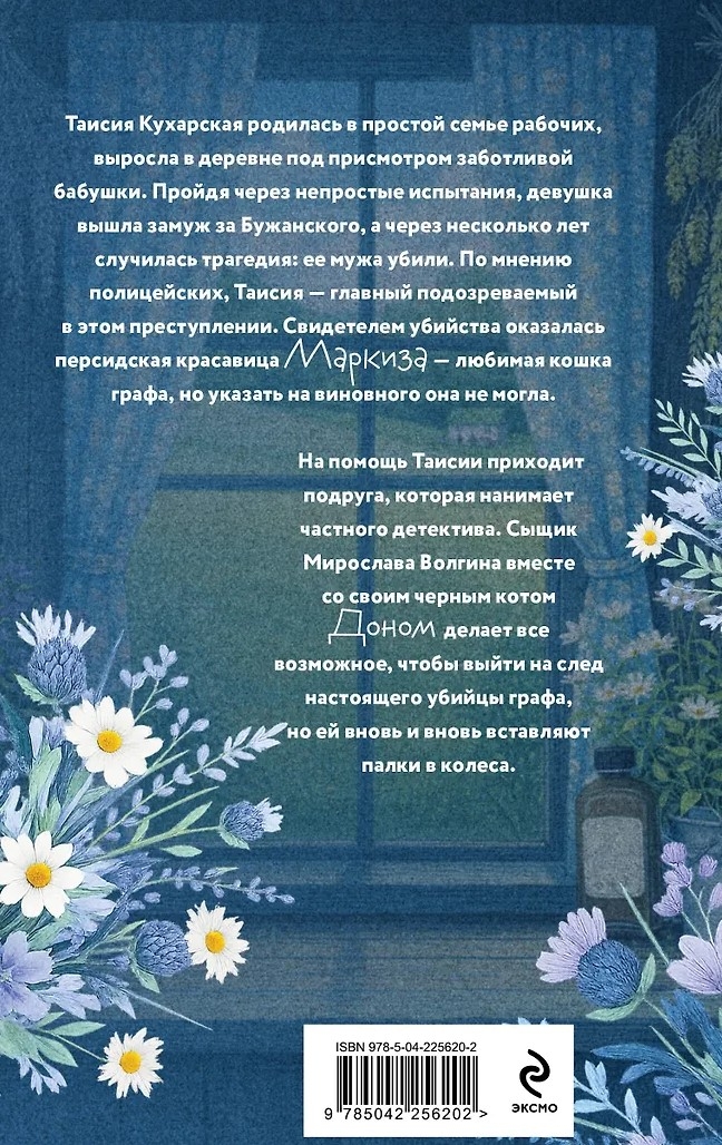 Taisija Kuharskaja piedzima vienkāršā strādnieku ģimenē un uzauga ciematā savas gādīgās vecmāmiņas aprūpē. Pēc grūtu pārbaudījumu pārciešanas viņa apprecējās ar Bužanski, bet dažus gadus vēlāk notika traģēdija: viņas vīrs tika noslepkavots. Pēc policijas datiem, Taisija ir galvenais aizdomās turamais šajā noziegumā. Skaista persiešu kaķene Markīze — grāfa mīļotā kaķene — bija slepkavības aculieciniece, taču viņai neizdevās precīzi noteikt vainīgo. Draugs nāk Taisijai palīgā un nolīgst privātdetektīvu. Detektīve Miroslava Volgina un viņas melnais kaķis Dons dara visu iespējamo, lai atrastu grāfa īsto slepkavu, taču viņiem atkal un atkal izdodas.