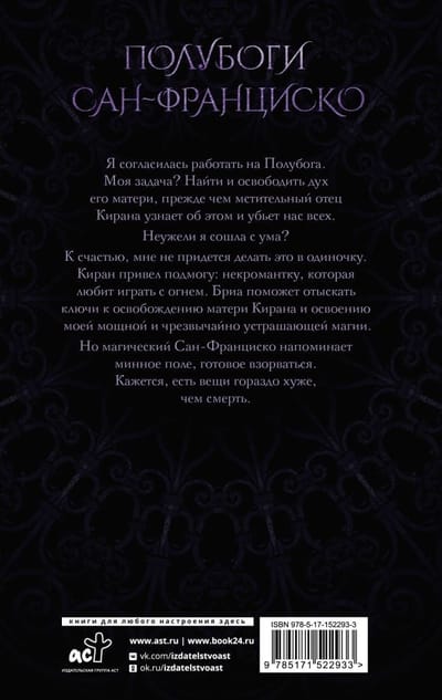 Es piekritu strādāt pusdieva labā. Mans darbs? Atrast un atbrīvot viņa mātes garu, pirms Kiranas atriebīgais tēvs to uzzina un nogalina mūs visus. Vai es esmu zaudējis prātu? Par laimi, man tas nebūs jādara vienam. Kīrans ir atvedis palīgu: nekromantu, kuram patīk spēlēties ar uguni. Brija palīdzēs atrast atslēgas, lai atbrīvotu Kierana māti un apgūtu manu spēcīgo un ārkārtīgi biedējošo maģiju. taču maģiskais Sanfrancisko ir kā mīnu lauks, kas gatavs uzsprāgt. Šķiet, ka ir daudz sliktākas lietas par nāvi.