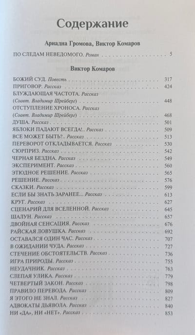Grāmatā iekļauti arī gandrīz visi Viktora Komarova īsie stāsti — neskaitāmi stāsti, kas izkaisīti pa grāmatu un periodisko izdevumu lappusēm, pirmo reizi ir apkopoti vienā sējumā.