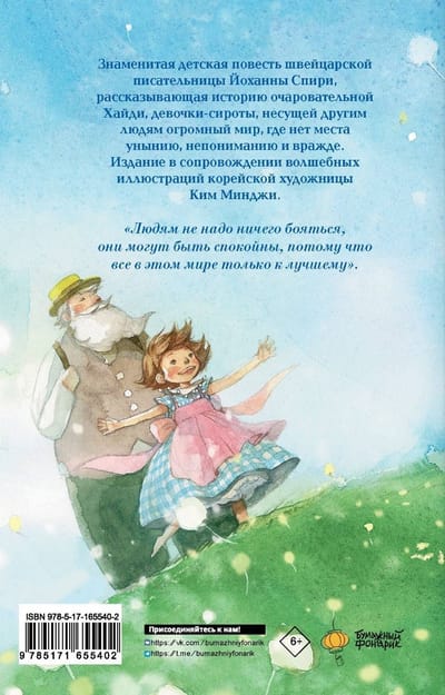 Slavenais šveiciešu rakstnieces Johannas Spyri romāns bērniem, kas stāsta par burvīgo Heidi, bāreņu meiteni, kura atnes citiem milzīgu pasauli, kurā nav vietas nomāktībai, nesaprašanai un naidīgumam. Tagad grāmata papildināta ar korejiešu mākslinieka Kima Minji burvīgām ilustrācijām.