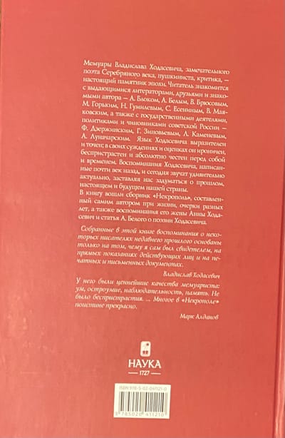 Izcilais sudraba laikmeta dzejnieks, kritiķis un literatūrvēsturnieks Vladislavs Felicianovičs Hodasevičs (1886–1939) atstājis mums brīnišķīgas atmiņas, kuru lappusēs dzīvo viņa draugi un paziņas - A. Bloks, A. Belijs, V. Brjusovs, M. Gorkijs, N. Gumiļevs, citi Vminena, S. Ješeņinrs, V. pēcrevolūcijas Krievijas valstsvīri - F. Dzeržinskis, A. Lunačarskis, L. Kameņevs, G. Zinovjevs. Hodaseviča valoda ir precīza un izteiksmīga, un viņa vērtējumi ir godīgi un dažreiz diezgan objektīvi.