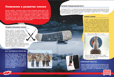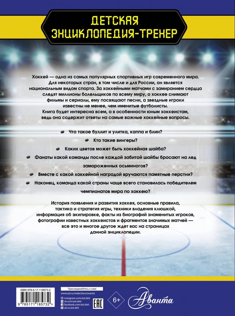 Šī grāmata ir veltīta tik populāram un izaicinošam sporta veidam kā hokejs. Tā stāsta par tā rašanās vēsturi, tālāko attīstību un noteikumu veidošanos, kā arī par slavenām sacensībām, slaveniem klubiem, leģendāriem spēlētājiem un treneriem. Grāmata palīdzēs jums izvēlēties pareizo ekipējumu, izskaidros hokeja laukuma uzbūvi, iepazīstinās ar spēles pamatnoteikumiem, taktiku un tehniku un pat iemācīs dažus viltus trikus - atjautīgus trikus, kas ļauj pārspēt pretinieku. Daudzpusīgā informācija, kas sniegta šajās lappusēs un papildināta ar daudzām pasaules hokeja zvaigžņu fotogrāfijām, ieinteresēs ikvienu lasītāju, bet jo īpaši iesācējus. Vidusskolas vecumam.
