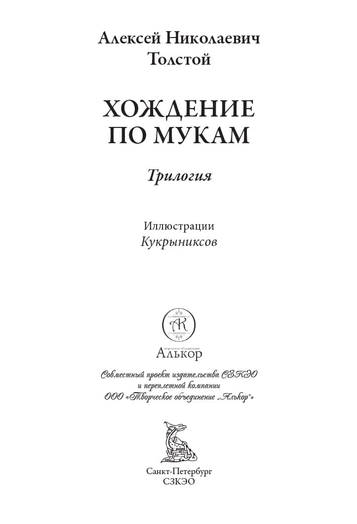 Alekseja Nikolajeviča Tolstoja (1882-1945) slavenajā triloģijā "Pastaigas pa mokām" aprakstīti krievu inteliģences likteņi 1917. gada revolūcijas laikā un pēc tās. Grāmatu rotā vairāki desmiti melnbaltu Kukriņņiksa ilustrāciju. Ar šo pseidonīmu uzstājās trīs mākslinieki: Mihails Vasiļjevičs Kuprijanovs, Porfrijs Ņikitičs Krilovs un Nikolajs Aleksandrovičs Sokolovs. Viņi kļuva slaveni kā izcili satīriskā zīmējuma meistari. Šajā izdevumā lasītāji var iepazīties ar viņu ilustrācijām, kas izpildītas reālistiskā manierē. Grāmatas beigās pievienotas Kukriņikova zīmējumu skices A. N. Tolstoja romānam.
