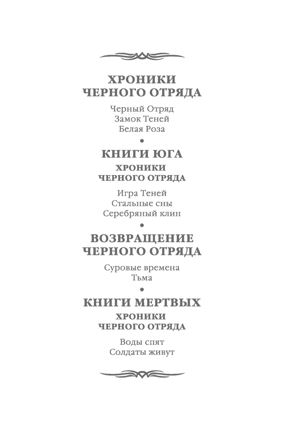 Melnās kompānijas hronikas. 9.–10. grāmata. Mirušo grāmatas: Ūdeņi guļ. Karavīri dzīvo.