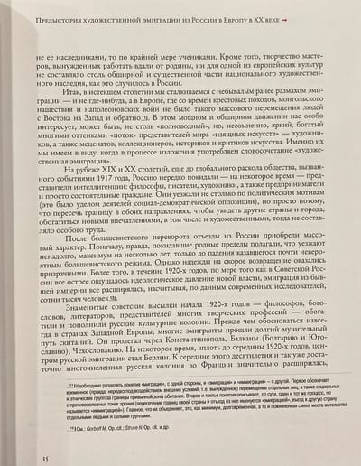 Grāmata ir fundamentāls pētījums par "pirmā viļņa" krievu mākslinieciskās emigrācijas fenomenu. Mēs runājam par māksliniekiem, kuri savu profesionālo darbību uzsāka Krievijas impērijas teritorijā, bet bija spiesti to turpināt citās valstīs: Turcijā (Konstantinopolē), Serbu, Horvātu un Slovēņu Karalistē (Belgradā), Čehoslovākijā (Prāgā), Vācijā (Berlīnē) un Francijā (Parīze). Autors apskata krievu emigrācijas mākslu kā vienotas pašmāju mākslas tradīcijas neatkarīgu plūsmu, kas savas neradošās būtības dēļ nošķirta no kultūras procesiem dzimtenē — 1917. gada boļševiku revolūcijas. Grāmatas unikalitāte ir tāda, ka abas plūsmas – iekšējais krievs un emigrants – šeit tiek pasniegtas kā viena kultūras fenomena – krievu mākslas – divas daļas. Grāmatā skarto meistaru vārdu loks ir ļoti plašs: no pasaulslavenajiem V. Kandinska, M. Šagāla, H. Soutine, N. Gončarova, M. Larionova līdz dzimtenē aizmirstajiem Marevnai, S. Šarčūnai, I. Puni, N. Tarhovam; no “Mākslas pasaules” loka retrospektīvajiem māksliniekiem A. Benuā, K. Somova, stilistiem B. Grigorjevam, A. Jakovļevam un Juņkovam līdz eksperimentālistiem un modernistiem P. Čeliščevam, V. Baranovam-Rosinam, A. Pevzneram, A. Lanskim, S. de Staelam un citiem. Grāmata ir bagātīgi ilustrēta, apgādāta ar plašiem pielikumiem un adresēta gan speciālistiem, gan plašam 20. gadsimta krievu mākslas cienītāju lokam.