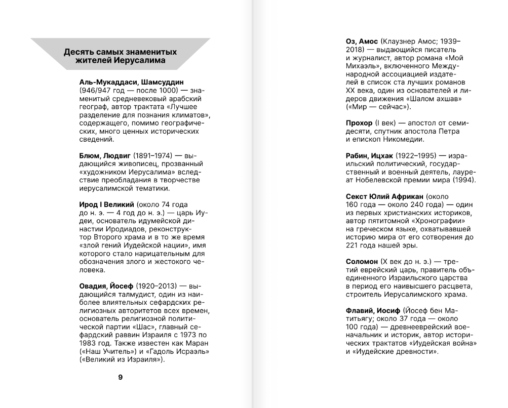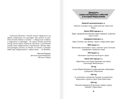 Ikviens, kurš atvērs grāmatu, sapratīs, cik tālu Jeruzaleme "atpaliek" no citām pilsētām savas vēstures bagātībā. Lappusēs atklātie noslēpumi pārsteigs un apburs jebkuru lasītāju!