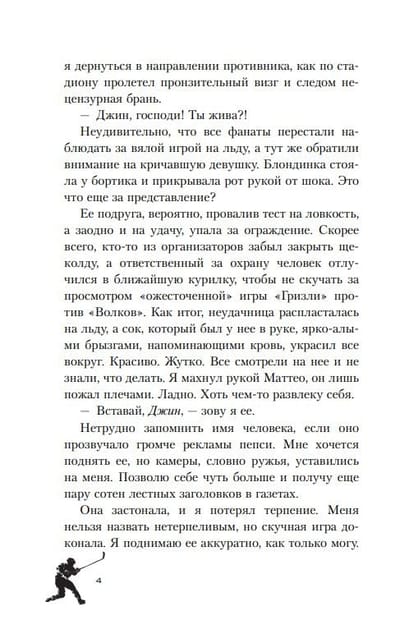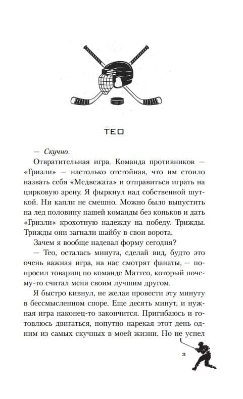 Kāda smieklīga sagadīšanās mani iepazīstināja ar nākamo Kanādas izlases spēlētāju. Viņa vārds, Teodors, bija katras otras meitenes lūpās visā valstī, bet kaut kādu iemeslu dēļ es biju nelaimīgais viņa uzmanības objekts. Lai arī cik ļoti es izvairījos no tikšanās ar viņu, Visums turpināja virzīt mūs kopā. Viņa neatlaidība, viņa intensīvais skatiens un tā fotogrāfija bez krekla man neatstāja nekādas iespējas. Neierobežots romāns ar izskatīgu hokejistu nešķita nemaz tik slikta ideja. Bet, kad es padevos kārdinājumam, es zināju, ka man vajag ko vairāk. Man vajag vairāk. Man vajag Teodoru. Viss viņš. Un es precīzi zināju, kad sākās mans kritiens bezdibenī.