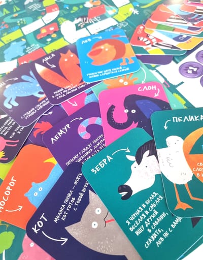 - 30 lielas kartītes ar dzīvniekiem;