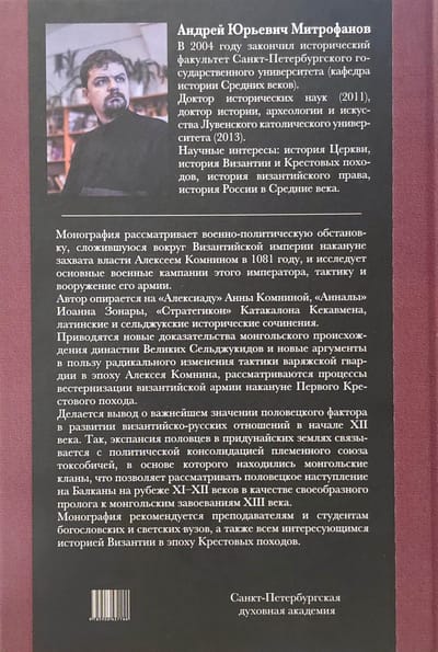 Vēstures zinātņu doktora Andreja Mitrofanova monogrāfijā "Imperators Aleksijs I Komnēns un viņa stratēģija" tiek pētīta militārā un politiskā situācija ap Bizantijas impēriju Aleksija Komnēna varas nākšanas priekšvakarā 1081. gadā, izpētot imperatora galvenās militārās kampaņas, kā arī viņa armijas taktiku un bruņojumu. Autors izdara secinājumus par Aleksija Komnēna militārās un politiskās stratēģijas būtību, balstoties uz pazīstamu bizantiešu vēstures literatūras darbu - Annas Komnēnas "Aleksiādu", kā arī Jāņa Zonara annālēm, Katakalona Kekaumenosa "Stratēģikonu", kā arī latīņu un seldžuku vēstures darbiem.