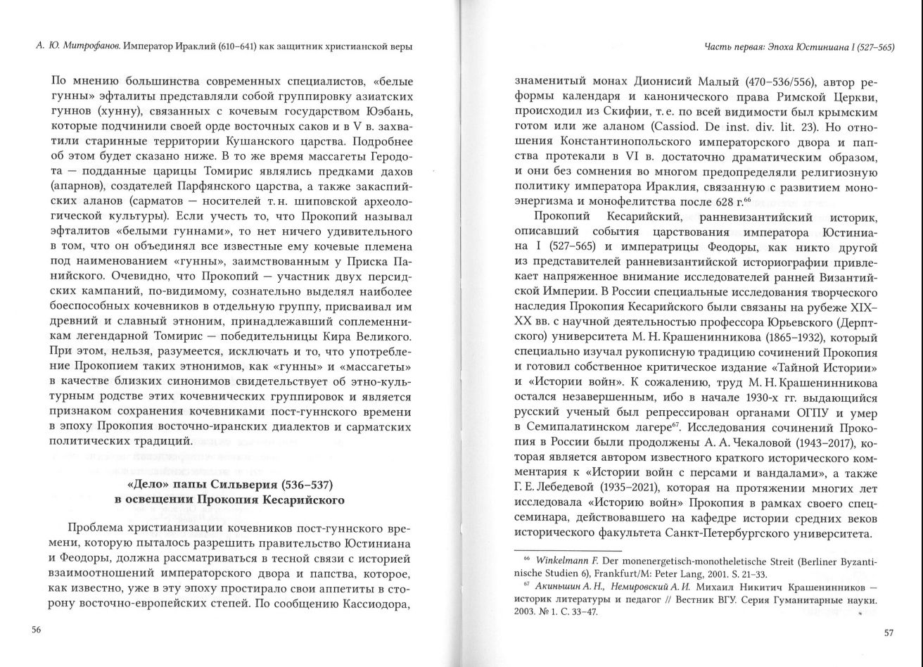 Šī monogrāfija, kuras autors ir vēstures zinātņu doktors un Sanktpēterburgas Teoloģijas akadēmijas Baznīcas vēstures katedras profesors A. Ju. Mitrofanovs, ir pirmā grāmata triloģijā, kas veltīta Bizantijas impērijas attiecību vēsturei ar barbaru perifēriju Vispasaules koncilu laikmetā. Tajā tiek pētīti Bizantijas impērijas politikas un diplomātijas juridiskie principi imperatora Heraklija (610.–641. g.) valdīšanas laikā un viņa priekšgājēju attiecībās ar Eirāzijas stepju klejotājiem. Romieši pirmo reizi saskārās ar Partu, militāru lielvalsti, ko izveidoja Eirāzijas klejotāji, jau pirmajā gadsimtā pirms mūsu ēras. Gadsimtiem ilgā romiešu un partiešu sāncensība par hegemoniju Tuvajos Austrumos lielā mērā noteica Bizantijas un Sasanīdu Irānas, Partijas vēsturiskā pēcteča, turpmāko attiecību raksturu. Autors uzskata, ka aktīvā kristīgā misija bija svarīgs faktors imperatora Heraklija uzvarā pār avariem un persiešiem.