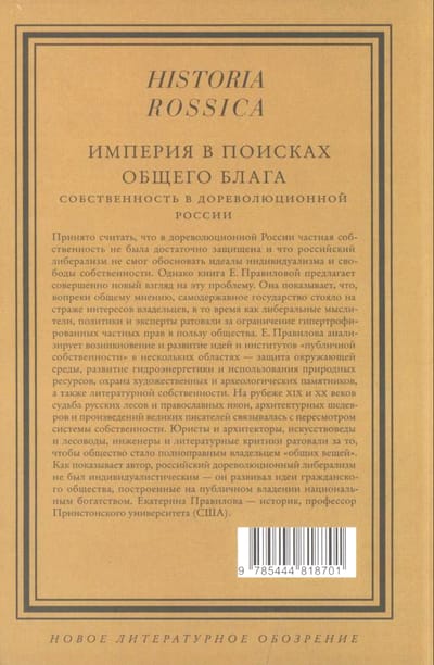 Pastāv vispārpieņemts uzskats, ka pirmsrevolūcijas Krievijā privātīpašums nebija pietiekami aizsargāts un ka krievu liberālisms nespēja pamatot individuālisma un brīvā īpašuma ideālus. Tomēr E. Pravilovas grāmata piedāvā pilnīgi jaunu perspektīvu šajā jautājumā. Viņa parāda, ka pretēji izplatītajam uzskatam autokrātiskā valsts aizsargāja īpašnieku intereses, savukārt liberālie domātāji, politiķi un eksperti iestājās par pārspīlētu privāto tiesību ierobežošanu sabiedrības labā. Pravilova analizē "sabiedriskā īpašuma" ideju un institūciju rašanos un attīstību vairākās jomās — vides aizsardzībā, hidroenerģijas attīstībā un dabas resursu izmantošanā, mākslas un arheoloģisko pieminekļu aizsardzībā un literārajā īpašumā. 20. gadsimta mijā Krievijas mežu un pareizticīgo ikonu, arhitektūras šedevru un lielu rakstnieku darbu liktenis bija saistīts ar īpašuma sistēmas pārskatīšanu. Juristi un arhitekti, mākslas vēsturnieki un mežsaimnieki, inženieri un literārie kritiķi iestājās par to, lai sabiedrība kļūtu par pilntiesīgiem "koplietošanas lietu" īpašniekiem. Kā autors parāda, pirmsrevolūcijas krievu liberālisms nebija individuālistisks — tas attīstīja pilsoniskās sabiedrības idejas, kas balstītas uz nacionālās bagātības publisko īpašumtiesībām.