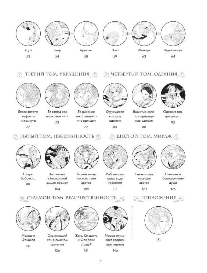 Šī ir visaptveroša rokasgrāmata ilustrāciju veidošanai tradicionālajā ķīniešu stilā, izmantojot līniju zīmēšanu. Tajā ir iekļauti ļoti dažādu tēmu piemēri: ziedi un augi, izsmalcināts apģērbs un rotaslietas, sadzīves priekšmeti, tēli un simboli — viss, kas kaut kādā veidā atgādina viduslaiku Ķīnas estētiku.