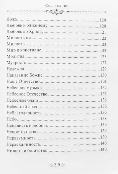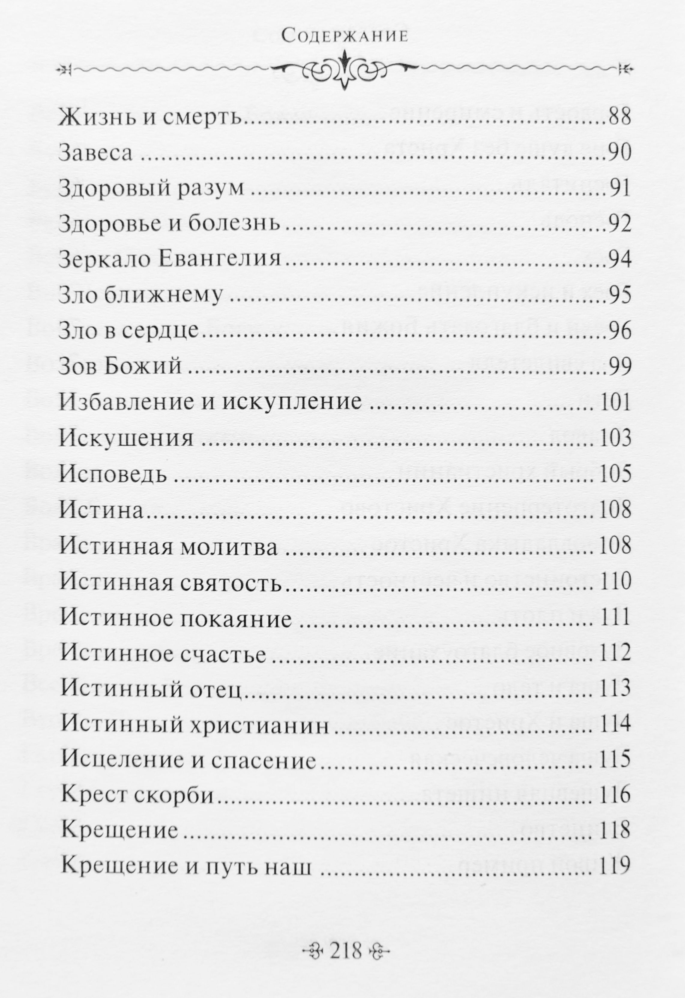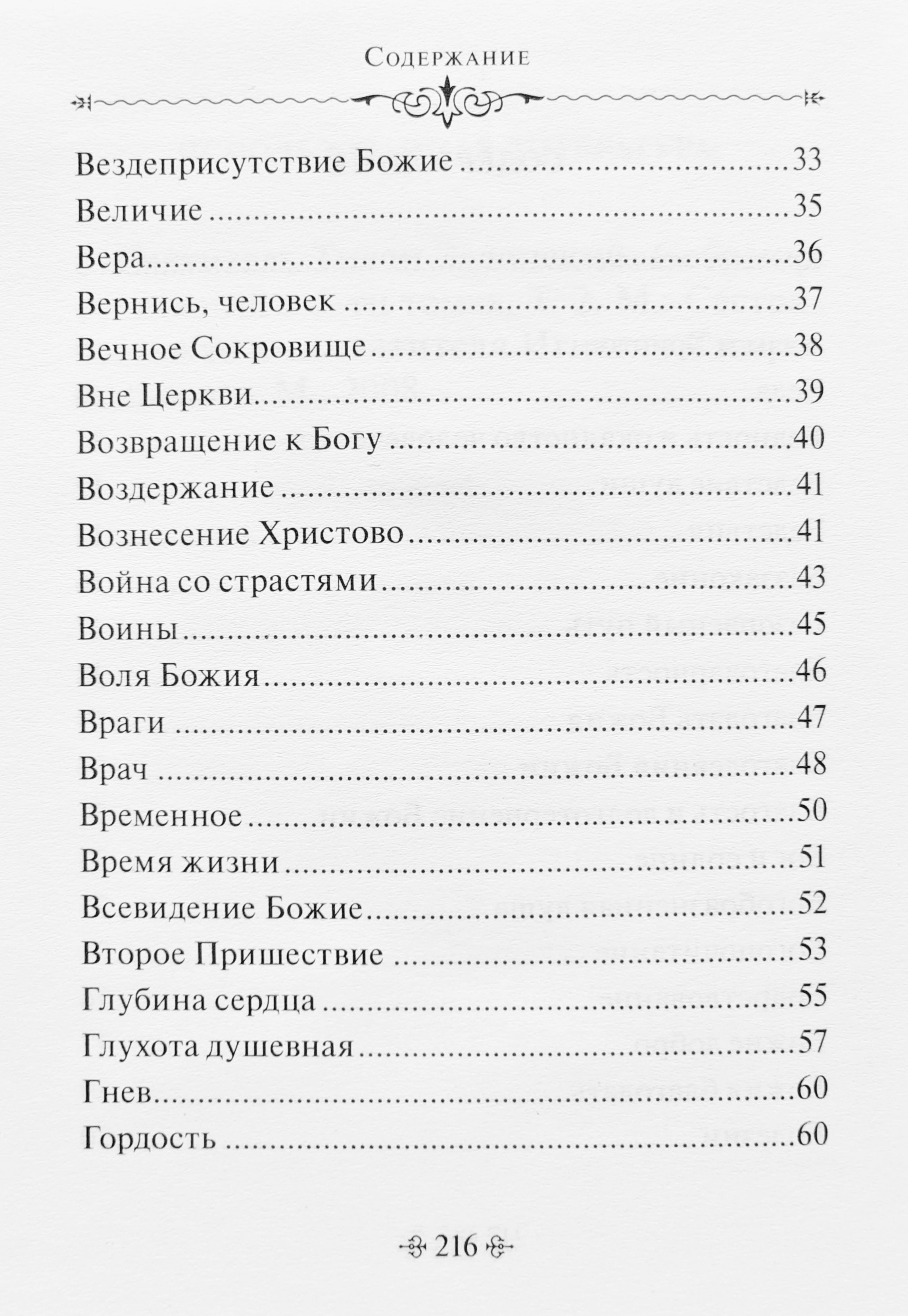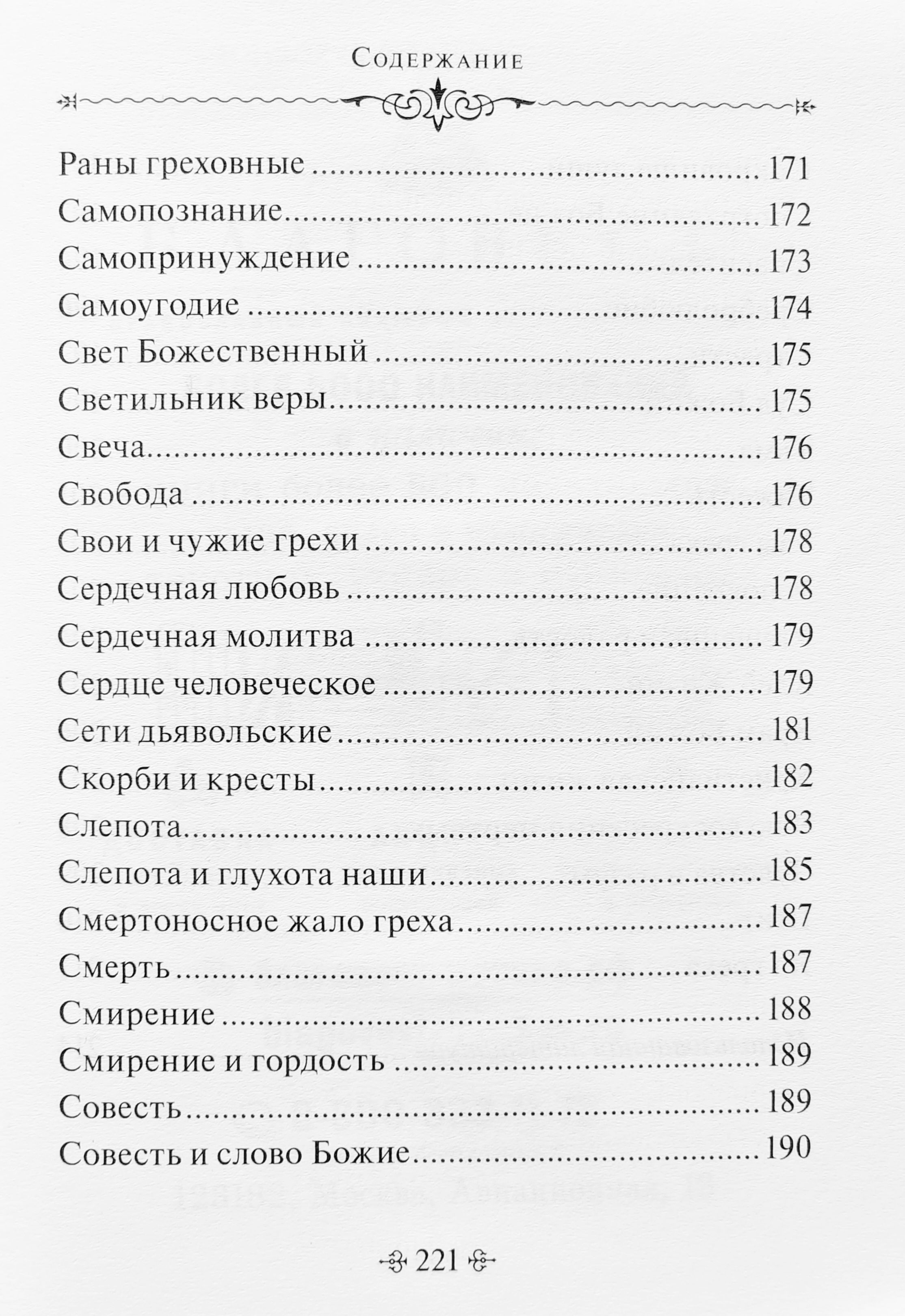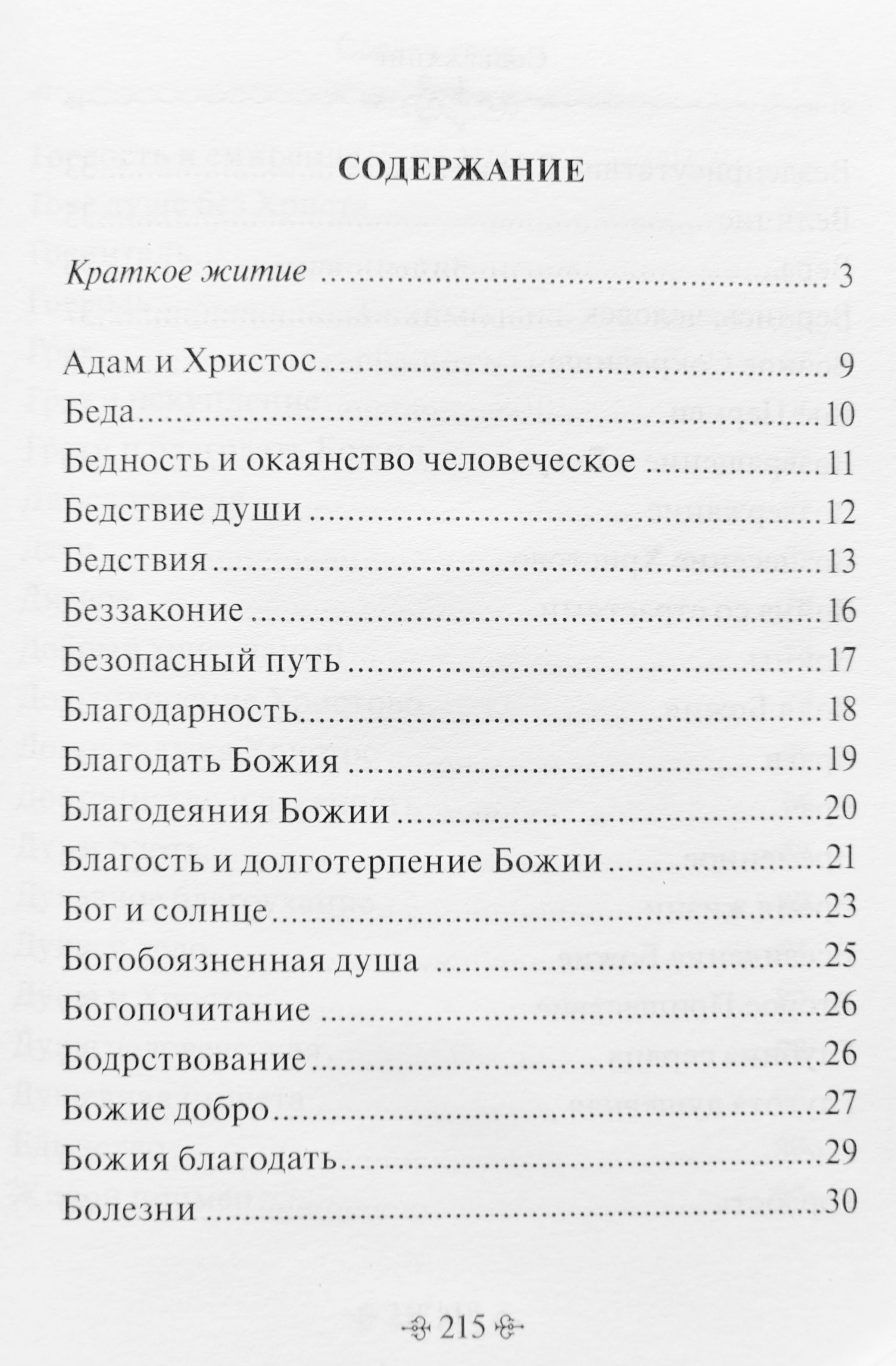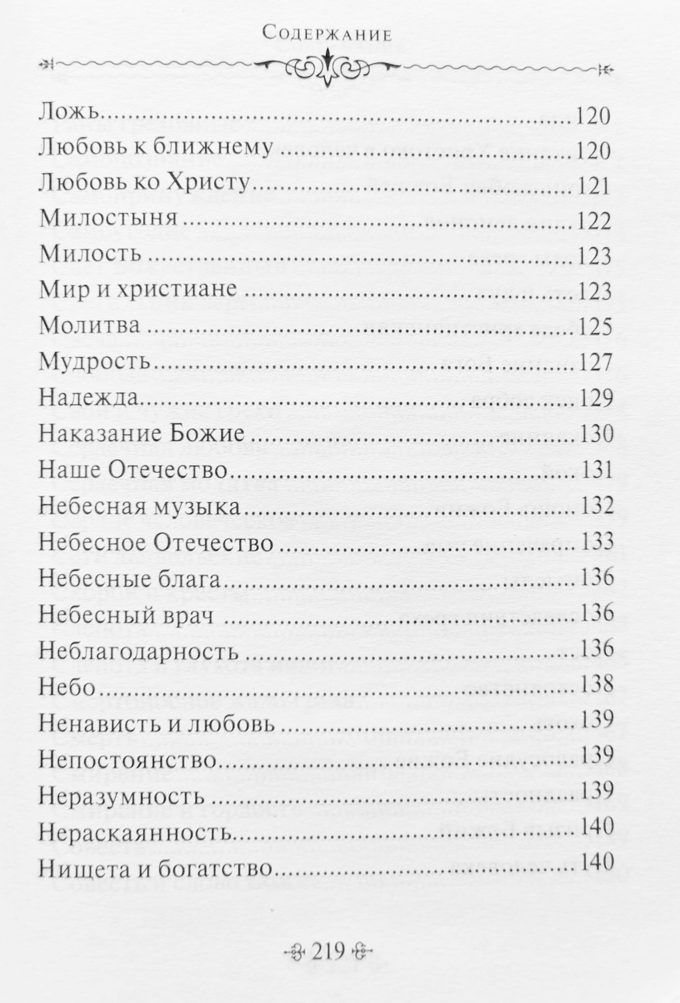 Šajā darbā ir apkopoti dižā pareizticīgo svētā Tihona Zadonska izteikumi par dažādām garīgām un morālām tēmām, kas ņemti no viņa rakstiem un sakārtoti alfabētiskā secībā. Izdevums ir paredzēts plašam pareizticīgo lasītāju lokam.