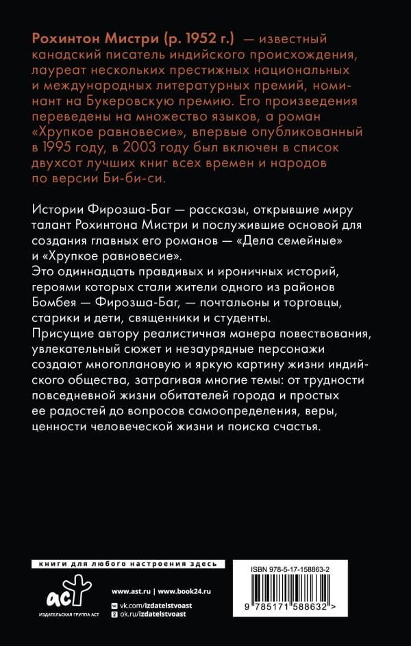 Firoža-Baga stāsti ir stāsti, kas pasaulei atklāja Rohintona talantu Mistrijs un kalpoja par pamatu viņa galveno romānu - "Ģimenes lietu" un "Fragila līdzsvara" - izveidei.