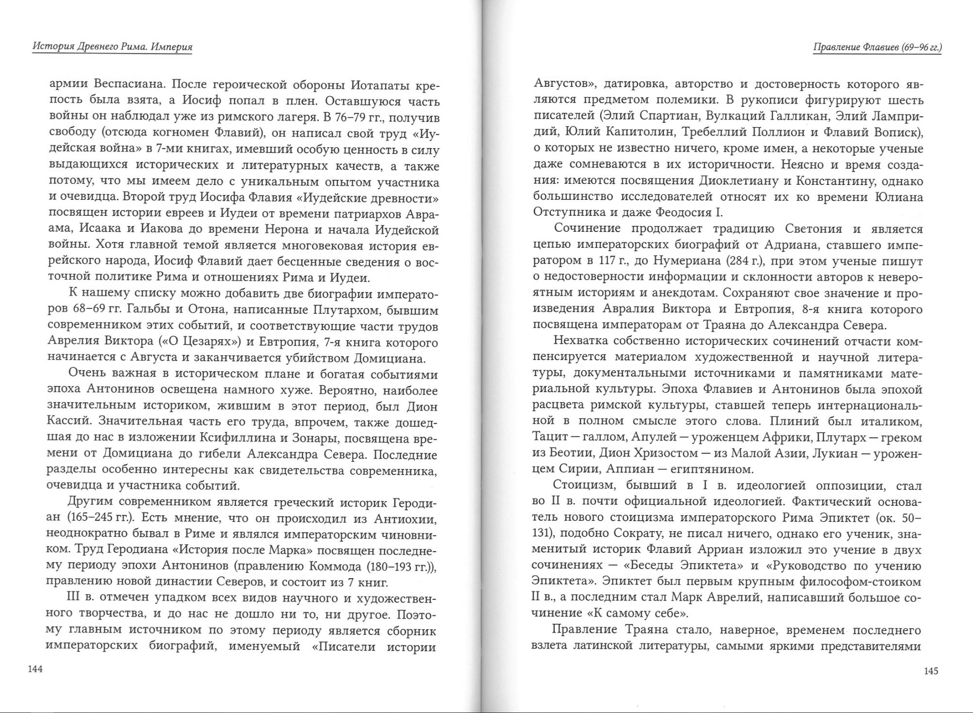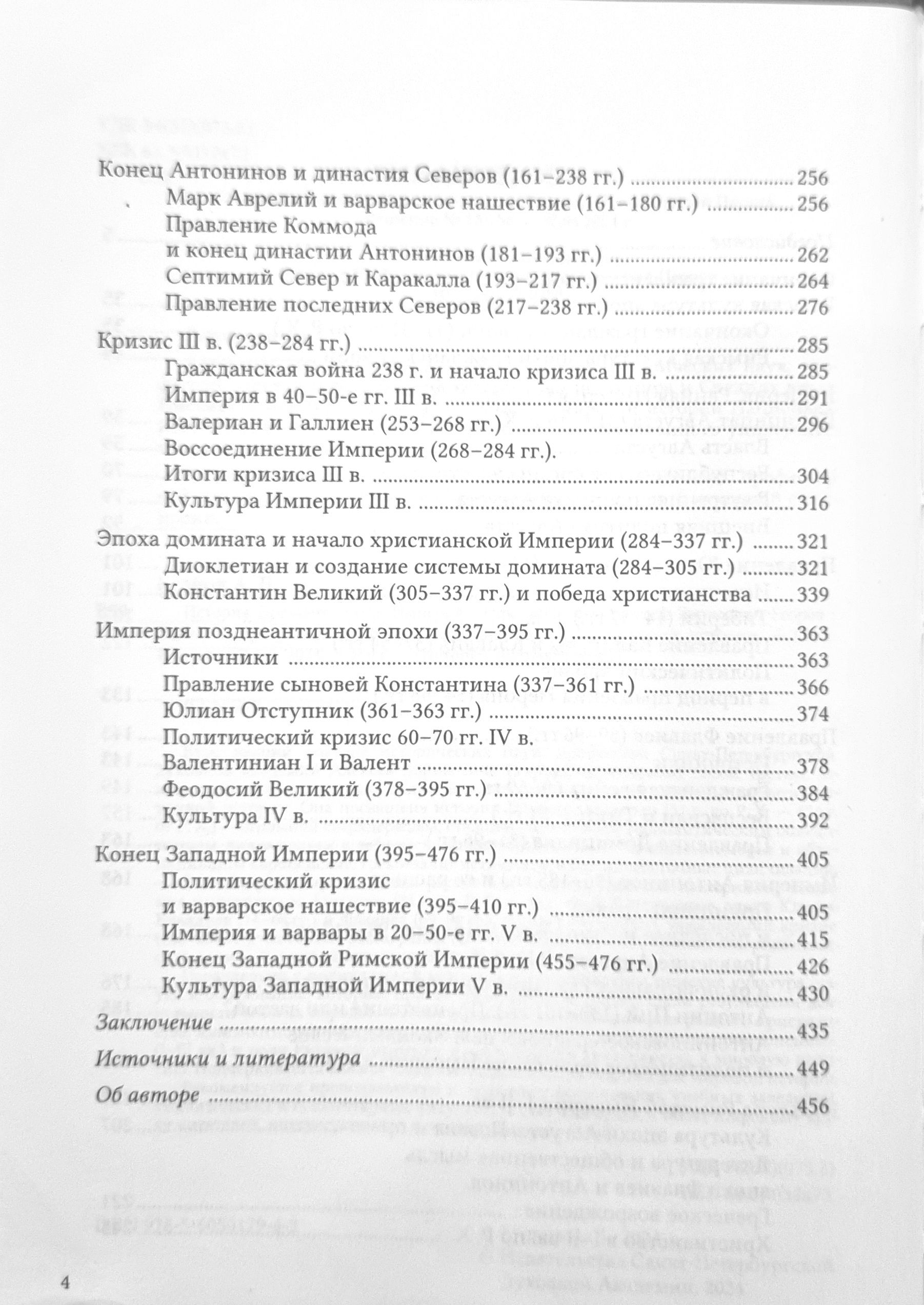 Grāmatā tiek aplūkoti Romas impērijas uzplaukuma un krišanas posmi: tās dibināšana, ko veica imperators Augusts (31. g. p.m.ē. — 14. g. m.ē.), sarežģītie Hulio-Klaudiāņu (14. g.–68. g.) un Flāviāņu (69. g.–96. g.) laikmeti, impērijas uzplaukums (96. g.–180. g.), vissmagākā krīze (180. g.–284. g.), daļēja atjaunošana (284. g.–378. g.) un visbeidzot krīze, kas beidzās ar Rietumu impērijas krišanu (378. g.–476. g.). Paralēli politiskajai vēsturei tiek aplūkota arī romiešu kultūra, zinātne un izglītība, kas savā grieķu-romiešu formā bija daudzu tautu darbības rezultāts. Īpaša uzmanība tiek pievērsta agrīnās kristietības vēsturei: kristietības un valsts attiecībām, pret kristiešiem vērstajām vajāšanām (1.–3. gs.) un Romas impērijas lomai kristietības pārvēršanā par pasaules reliģiju. Tiek uzsvērta Romas civilizācijas nozīme pasaules vēsturē.