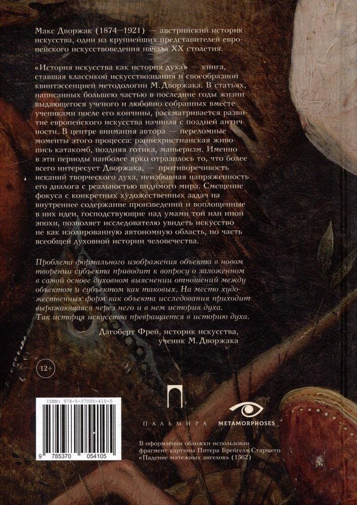 "Mākslas vēsture kā gara vēsture" ir austriešu mākslas vēsturnieka, Vīnes Universitātes profesora, viena no modernās mākslas filozofijas un teorijas pamatlicējiem Maksa Dvoržāka (1874-1921) rakstu krājums. Grāmata, ko pēc viņa nāves sastādīja viņa skolnieki, atklāja izcilā zinātnieka darbu piecu sējumu krājumu, kļūstot par vispilnīgāko viņa jaunākās metodoloģijas atspoguļojumu. Eiropas mākslas evolūcijas aprakstu Dvoržāks sāk ar vēlo antīko laiku un apzināti izvēlas pagrieziena punktus - agrīno kristīgo katakombu glezniecību, vēlīno gotiku, manierismu, pievēršoties radošā gara meklējumu konfliktam, tā mūžīgajam un intensīvajam dialogam ar redzamās pasaules konkrētībām.