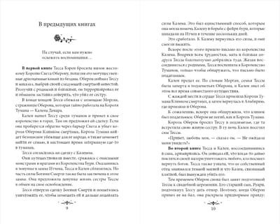 Nepārvarama tumsa ir pārņēmusi Ezīru zemi. Bezzvaigžņu debesis pāršalca komēta. Senais pravietojums bija piepildījies: sen aizmirstie briesmīgie dievi bija atgriezušies. Tesai, palikušai vienai, šķirta no visiem, kurus viņa mīl, ir jāatrod veids, kā stāties pretī gaidāmajai vētrai. Meitene jūt sevī bīstamu, nezināmu enerģiju. Bet vai šis biedējošais spēks varētu būt viņas vienīgā iespēja izglābties? Tesai ir jāiemācās kontrolēt savas spējas, pirms postošā maģija viņu pilnībā sagrāba. Viņai jāatrod spēks stāties pretī savam mīļotajam. Galu galā Miglas karalis ir zvērējis iznīcināt ikvienu, kas ļaus dieviem pamosties, pat tad, ja nogalināt nāksies pašu Tessu.