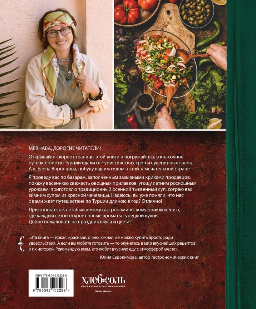 Apnicis standarta tūristu iespaids par Turciju? Aizmirstiet par "viss iekļauts"! Šī grāmata aizvedīs jūs īstās Turcijas sirdī, atklājot tās noslēpumus caur unikālo sezonālo virtuvi — greznu pavasari ar zaļām plūmēm un pienainām mandelēm, karstu vasaru ar gataviem, apaļīgiem tomātiem, kas lūdzas pēc ganu salātiem, rudeni gatavu granātābolu krāsā un oranžzaļu ziemu. Autentiskas turku virtuves krāsu un garšu sacelšanās.