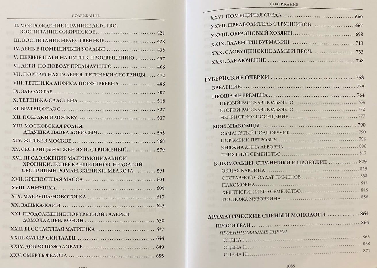 Šajā kolekcijā ir iekļauti šī perioda darbi: romāni “Pilsētas vēsture”, “Golovļevi”, “Pošehonskas senatne” un daudzas pasakas. Izdevumā iekļauti arī “Provinces esejas” un cikls “Dramatiskas ainas un monologi”.