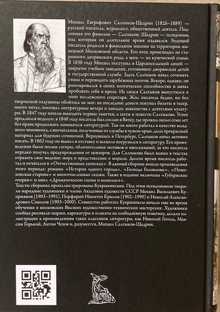 Mihails Jevgrafovičs Saltikovs-Ščedrins (1826–1889) bija krievu rakstnieks, žurnālists un sabiedrisks darbinieks. Viņa īstais uzvārds ir Saltykovs; Ščedrins ir pseidonīms, ar kuru viņš ilgu laiku publicējās. Topošais rakstnieks ir dzimis ģimenes īpašumā tagadējā Maskavas reģionā. Viņa tēvs nāca no senas dižciltīgas ģimenes, bet māte no tirgotāja ģimenes. 1838. gadā Mihails iestājās Carskoje Selo licejā, slēgtā izglītības iestādē, kas sagatavoja dižciltīgos bērnus valsts dienestam. Šeit Saltykov sāka rakstīt dzeju un tulkot ārzemju dzejniekus. Tomēr drīz viņš kļuva vīlies savās poētiskajās spējās un sāka izmēģināt sevi prozā. Saltykovs absolvējis liceju ar koledžas sekretāra pakāpi. Rakstnieks dzīvoja trūcīgi, taču nevarēja iztikt bez radošā noieta: par pēdējo naudu iegādājās teātra biļetes, daudz lasīja, apmeklēja literāros vakarus un iepazinās ar kultūras darbiniekiem. 1847. gadā sāka publicēt pirmās Saltykova piezīmes un pēc tam stāstus. Panākumi nebija ilgi: 1848. gadā rakstnieks tika izsūtīts uz Vjatku, kur viņš dzīvoja apmēram septiņus gadus bez tiesībām turpināt nodarboties ar literatūru. Tur viņš daudz strādāja par jaunāko ierēdni, un iespaidi, kas gūti no dienesta svešā zemē, sniedza lielisku materiālu turpmākajiem rakstiem. Atgriežoties Sanktpēterburgā, Saltykov sāka aktīvi rakstīt. 1862. gadā viņš aizgāja pensijā un pilnībā nodevās literatūrai. Viņa darbi bija pilni satīras, apsūdzošu motīvu un alegoriju, par ko rakstnieks bieži saņēma brīdinājumus no cenzoriem. Saltikovam bija svarīgi savos tekstos atspoguļot savu pasaules redzējumu un idejas par morāli. Ilgu laiku rakstnieks strādāja un tika publicēts Otechestvennye Zapiski.