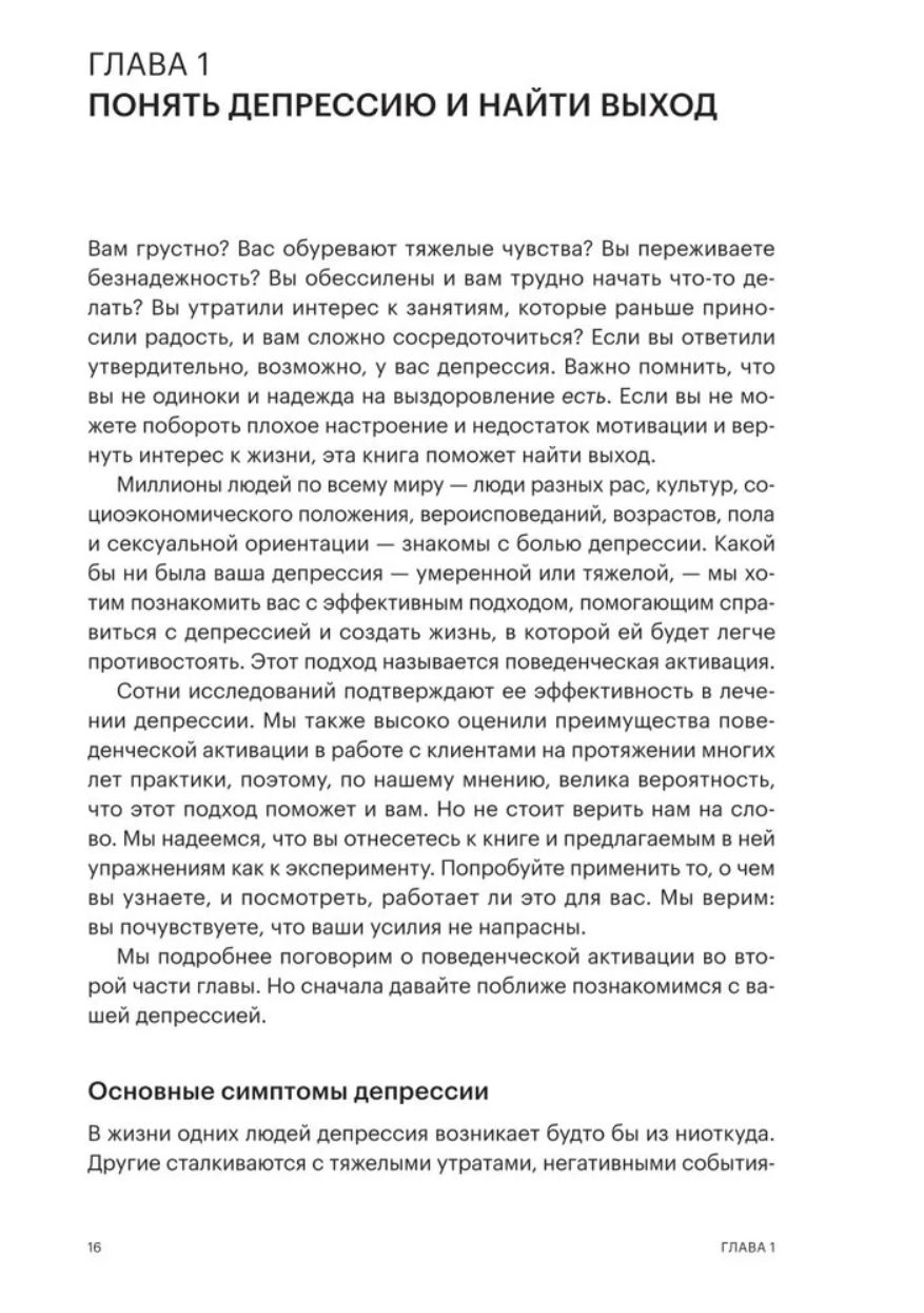 Balstoties uz uzvedības aktivizēšanu, pārbaudītu depresijas ārstēšanas metodi un kognitīvi biheiviorālo terapiju (KBT), šī grāmata palīdzēs jums izstrādāt savu plānu garastāvokļa uzlabošanai (un pieturēties pie tā!). Jūs arī apgūsiet spēcīgus rīkus, kuru pamatā ir apzinātība, sevis līdzjūtība un pateicības prakses, kas veicina pozitīvismu un iedvesmo cerību. Vissvarīgākais ir tas, ka jūs iemācīsities pārvarēt depresijas inerci, lai varētu atgriezties pie tā, kas jums kādreiz sagādāja prieku, un atrast jaunu jēgu un mērķi savā dzīvē.
