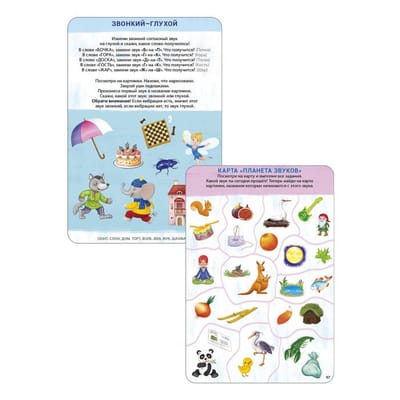 Ja viņš saprastu atšķirību starp jēdzieniem "skaņa" un "burts", viņš nekļūdītos. Komplekts "Skaņu mācīšanās ar neiropsihologu" iepazīstinās jūsu bērnu ar tādu jēdzienu kā "skaņa". Viņš iemācīsies atšķirt un noteikt skaņas pēc dzirdes (vārda sākumā, beigās un vidū), iepazīsies ar jēdzieniem "skanīga un nedzirdīga", "cieta un mīksta" skaņa, pratīs atšķirt bieži sajauktas skaņas. Komplektā ir 49 abpusējas daudzkārt lietojamas kartītes un kartīte ar instrukciju. Kāda ir komplekta īpatnība: