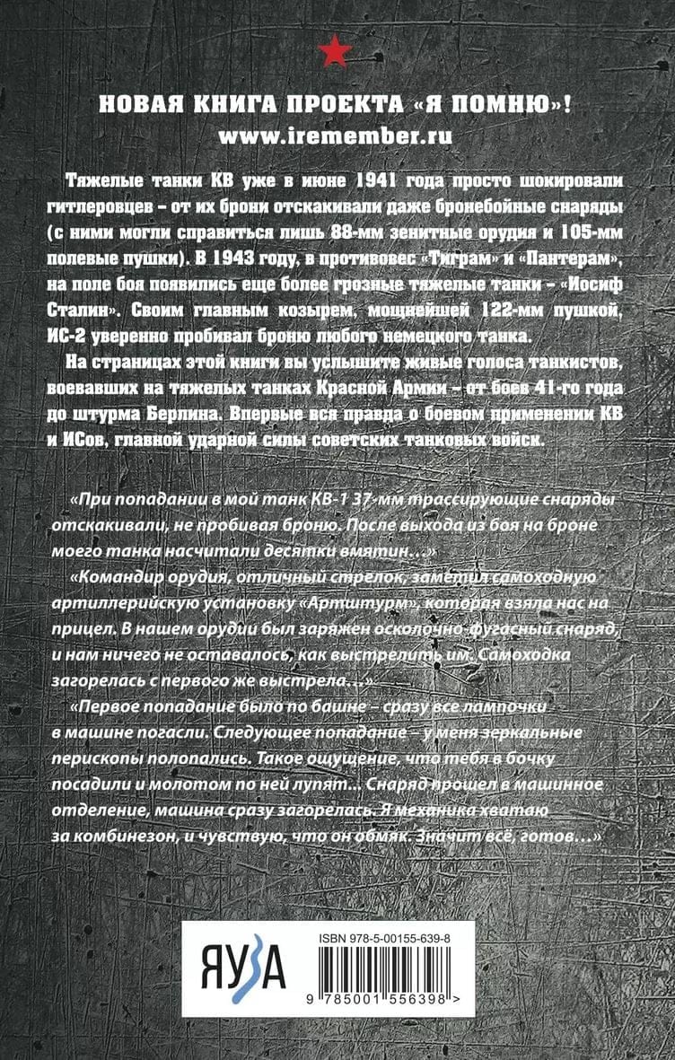 Šīs grāmatas lappusēs lasītājs dzirdēs to tankistu dzīvās balsis, kuri cīnījās uz Sarkanās armijas smagajiem tankiem - no 1941. gada kaujām līdz Berlīnes šturmam. Pirmo reizi uzzināsiet visu patiesību par briesmīgo KV un IS - tanku spēku galvenā triecienspēka - kaujas pielietojumu.