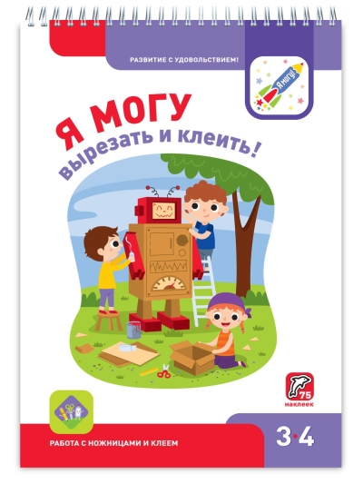 Tajā ir 30 uzdevumi, ko izgriezt, un 27 uzdevumi, kuros spēlēties ar uzlīmēm: *ļoti vienkārši! *80 atkārtoti lietojamas uzlīmes šajā grāmatā *iemācās lietot šķēres un līmi *4 trīsdimensiju darbiņi *jaukas spēļu tēmas *interesantas tēmas diskusijām * trenē uzmanību un neatlaidību *ērtā formātā un atsperu iesējumā