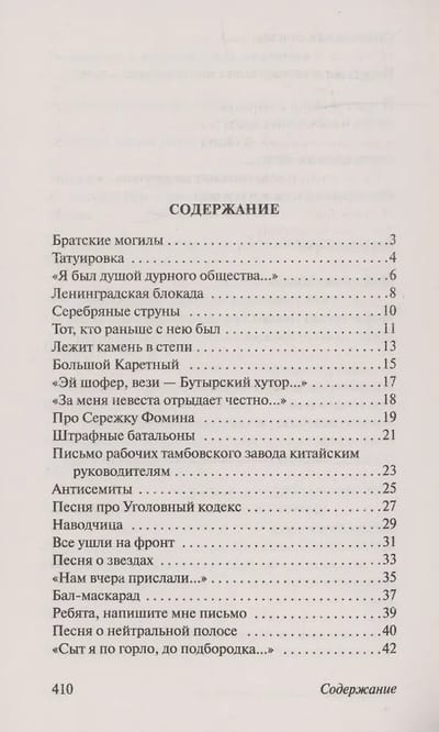 Šajā krājumā iekļauti Visocka darbi, kas aptver plašu tēmu, stilu un virzienu klāstu viņa daudzpusīgajā daiļradē: no kodīgām satīrām par reālās pasaules neglītumu līdz krāsainām "kriminālās folkloras" stilizācijām, no sirdi plosošiem kara vārdiem līdz sirdi plosošiem mīlas vārdiem.