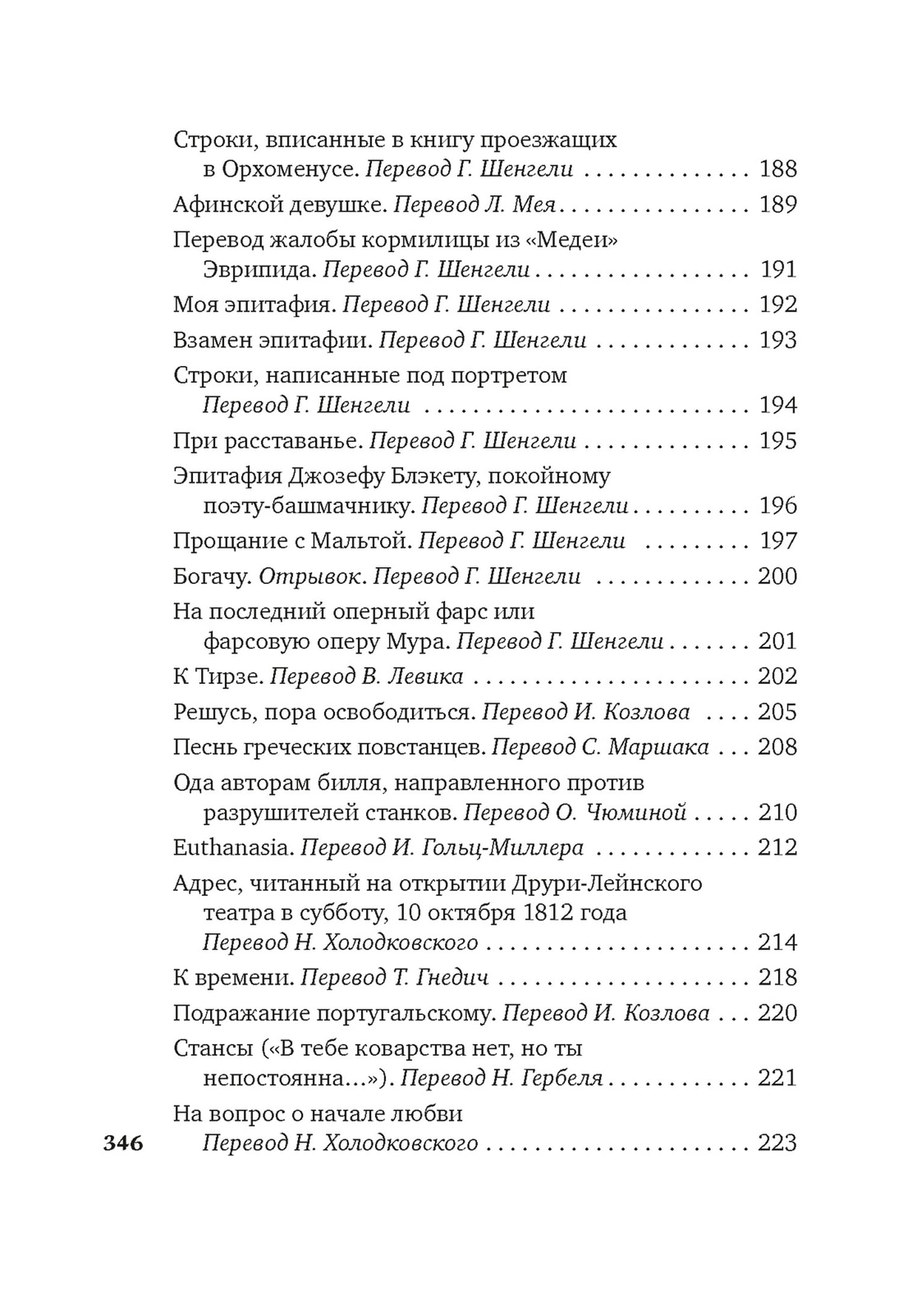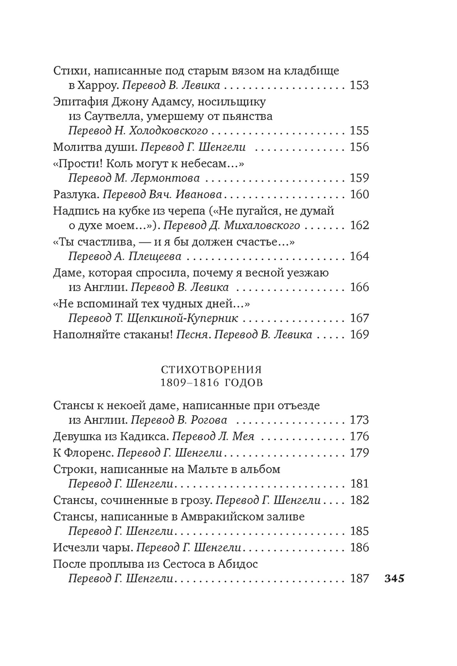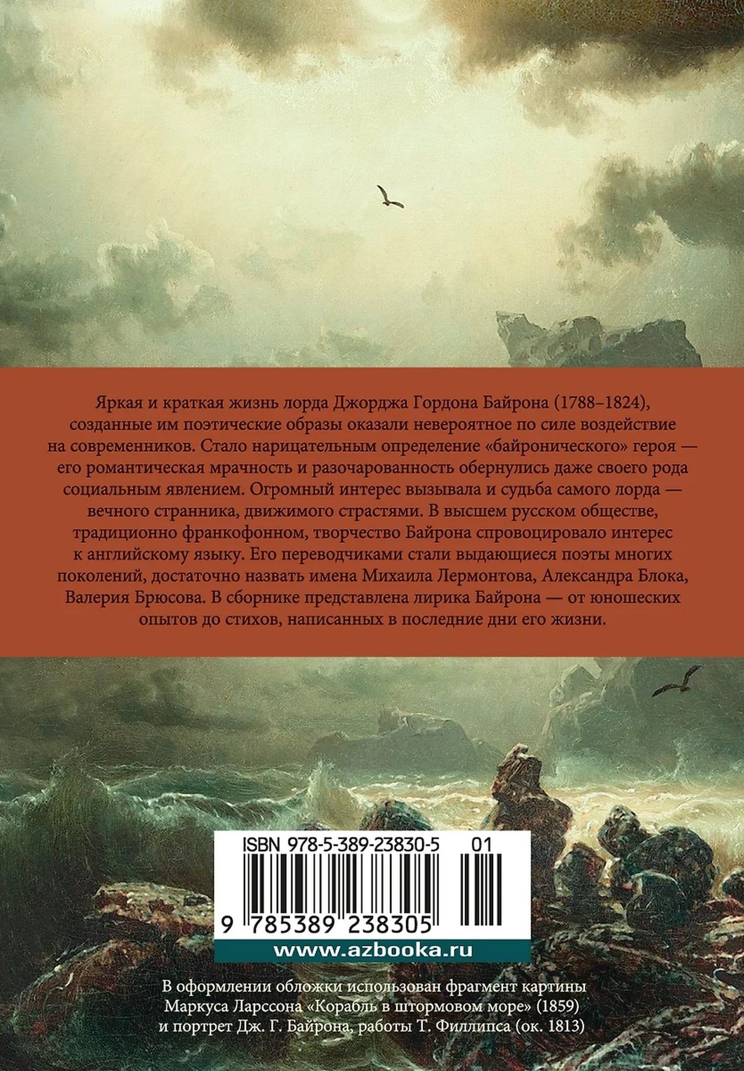 Lorda Džordža Gordona Bairona (1788–1824) gaišā un īsā dzīve un viņa radītie poētiskie tēli neticami ietekmēja viņa laikabiedrus. “Bironiskā” varoņa definīcija ir kļuvusi par ikdienišķu vārdu – viņa romantiskais drūmums un vilšanās pat pārtapusi par sava veida sociālu fenomenu. Lielu interesi izraisīja arī paša kunga, mūžīgā kaislību dzīta klaidoņa, liktenis. Krievu augstākajā sabiedrībā, tradicionāli frankofonā, Bairona darbs izraisīja interesi par angļu valodu. Tā tulkotāji bija izcili daudzu paaudžu dzejnieki, pietiek nosaukt Mihailu Ļermontovu, Aleksandru Bloku, Valēriju Brjusovu. Krājumā ir iekļauti Bairona dziesmu teksti, sākot no viņa jaunības pieredzes līdz dzejoļiem, kas rakstīti viņa pēdējās dzīves dienās.