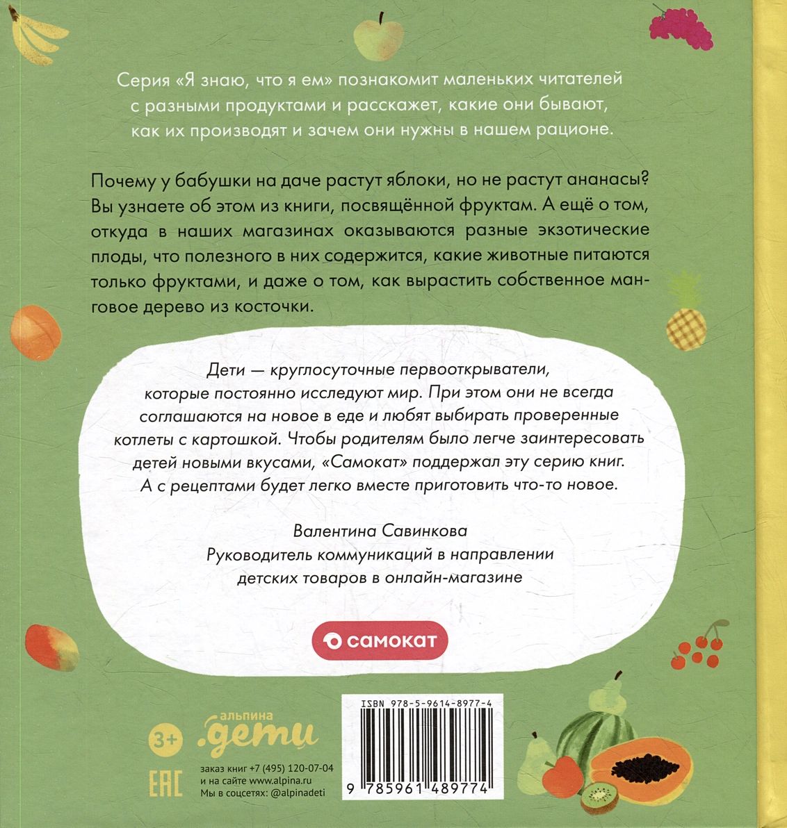 Kāpēc vecmāmiņas sētā aug āboli, bet ne ananasi? To uzzināsiet šajā grāmatā par augļiem. Uzzināsi arī, no kurienes nāk eksotiskie augļi, kas tajos ir, kuri dzīvnieki ēd tikai augļus un pat to, kā no sēkliņas izaudzēt savu mango koku.