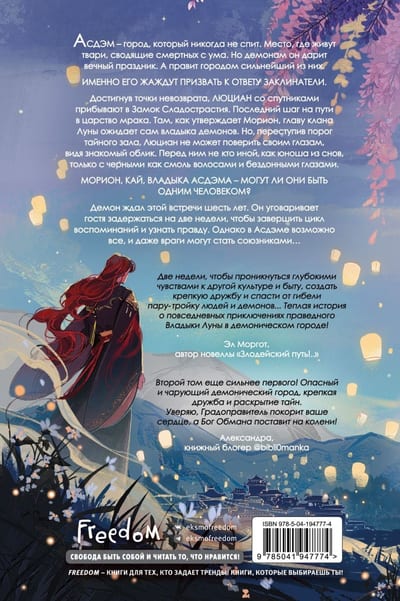 Unikālas fantāzijas turpinājums, kas balstīts uz ķīniešu romāniem - oriģināla pasaule ar Āzijas aromātu no Lucida Aquila, kas ir populāra krievu fandomā. Romāns par dēmoniem, burvestībām, tumšajiem spēkiem, maģiju un dvēseli mokošiem tumšiem noslēpumiem. Izdevumā būs jaunas bonusa nodaļas, kā arī vēl vairāk krāsainu ieliktņu ar rakstzīmēm! Grāmatai ir pievienota ar foliju izrotāta putekļu jaka.