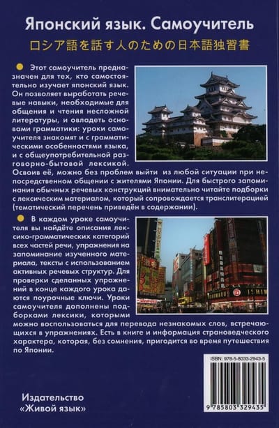 Šis pašmācības līdzeklis ir paredzēts patstāvīgiem japāņu valodas apguvējiem. Tas ļauj attīstīt runas prasmes, kas nepieciešamas saziņai un vienkāršas literatūras lasīšanai, kā arī apgūt gramatikas pamatus: pašmācības nodarbības iepazīstina gan ar valodas gramatiskajām iezīmēm, gan ar ikdienā sastopamo vārdu krājumu. Apgūstot to, jūs varēsiet viegli izkļūt no jebkuras situācijas, tieši komunicējot ar japāņiem. Lai ātri iegaumētu biežāk sastopamās runas konstrukcijas, uzmanīgi izlasiet krājumus ar leksikas materiālu (tematiskais saraksts ir dots saturā). Katrā pašmācības grāmatas nodarbībā jūs atradīsiet visu runas daļu leksikogramatisko kategoriju aprakstus, vingrinājumus apgūstamā materiāla iegaumēšanai, tekstus ar aktīvām runas konstrukcijām. Nodarbībās veikto vingrinājumu pārbaudei ir dotas nodarbību atslēgas. Grāmatā iekļauta arī informācija par valstu mācībām, kas neapšaubāmi noderēs, ceļojot pa Japānu.