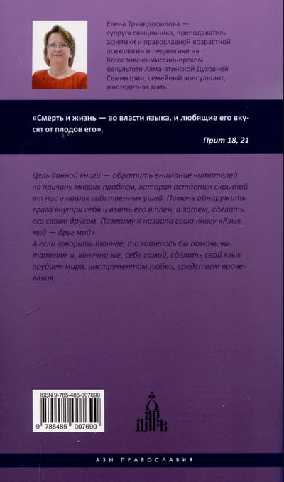"Šīs grāmatas mērķis ir pievērst lasītāju uzmanību daudzu problēmu cēloņiem, kas paliek apslēptas no mums un mūsu pašu ausīm. Palīdzēt atklāt sevī ienaidnieku un sagūstīt viņu, un pēc tam padarīt viņu par savu draugu. Tāpēc es savu grāmatu nosaucu par "Mana mēle ir mans draugs". Precīzāk sakot, es vēlētos palīdzēt lasītājiem un, protams, sev, padarīt mūsu mēli par miera instrumentu, mīlestības instrumentu, dziedināšanas līdzekli." Tā par savu grāmatu runā autore, priestera sieva, Almati Teoloģijas semināra pasniedzēja, ģimenes konsultante, daudzu bērnu māte, lasītājiem pazīstama no grāmatām "Piedošanas prieks" un "Pateicības noslēpums".