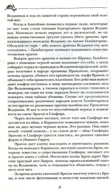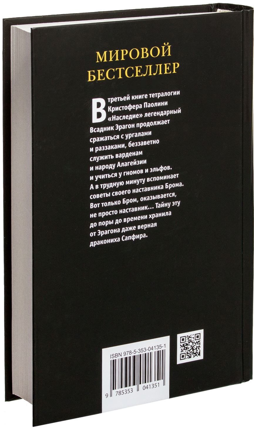 Tetraloģijas 3. grāmata. Leģendārais jātnieks Eragons turpina cīnīties ar urgaliem un Razzakiem, no visas sirds kalpot Vardeniem un Alāgeisijas iedzīvotājiem, kā arī mācīties no rūķiem un elfiem. Un grūtos brīžos viņš atceras sava skolotāja Broma padomu. Tikai izrādās, ka Broms nav tikai padomdevējs... Pat uzticīgā pūķene Safīra līdz šim to turēja noslēpumā.