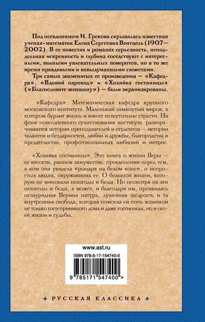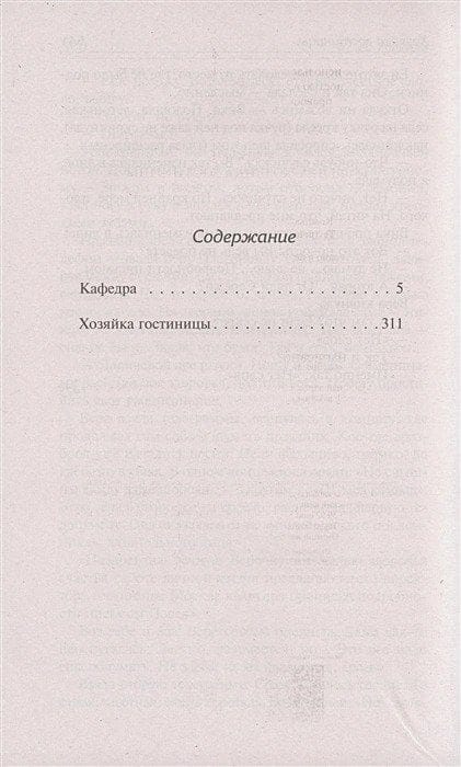 "Departaments". Liela Maskavas institūta matemātikas nodaļa. Tā ir maza, noslēgta pasaule, kurā kūsā dzīve un kūsā kaislības. Uz institūta ikdienas eksistences fona risinās pasniedzēju un studentu stāsti - stāsti par talantu un beztalantību, mīlestību un draudzību, cēlumu un nodevību, profesionālajām ambīcijām un intrigām. "Krodzinieks". Šī ir grāmata par Veras dzīvi - viņas jaunību, agrīno laulību, pielūgsmi tam, kurā viņa saskatīja "bruņinieku uz balta zirga", par sarežģītajiem cilvēkiem, kas viņu ieskauj. Par lielo dzīvi, kurai garām neiet grūtības un nepatikšanas. Bet, neskatoties uz šīm grūtībām un nepatikšanām, un varbūt tieši pateicoties tām, Verīnas neparastais raksturs, dāsnums un iekšējā brīvība, kas viņai palīdzēja kļūt ne tikai par viesmīlīgas mājas un pat viesnīcas saimnieci, bet arī par savas dzīves un likteņa saimnieci.