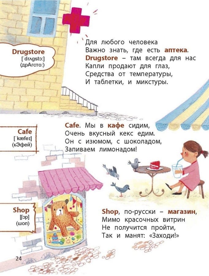 Šī grāmata palīdzēs jums viegli un rotaļīgi iepazīstināt mazuli ar pirmajiem angļu valodas vārdiem. Zem tās vāka ir viss, kas bērniem tik ļoti patīk: jautri dzejoļi un koši attēli. Lai palīdzētu vecākiem, katram angļu valodas vārdam ir divas transkripcijas - klasiskā (rakstīta ar starptautisko zīmju palīdzību) un praktiskā (rakstīta ar krievu burtiem, kā tas ir ierasts frāžu burtnīcās). Grāmata ir turpinājums līdzīgi jautrajai rokasgrāmatai "Kā "desas" angļu valodā?". Abu grāmatu pamatā ir darba materiāli, kurus autore jau daudzus gadus veiksmīgi izmanto angļu valodas nodarbībās ar pirmsskolas vecuma bērniem.