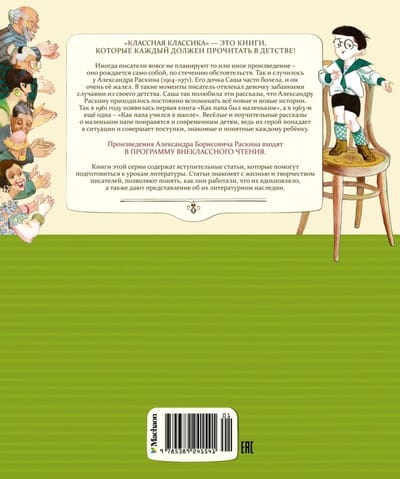 Kadreiz rakstnieki vispār neplāno konkrētu darbu - tas rodas nejauši. Tā notika ar Aleksandru Raskinu (1914-1971). Viņa meita Saša bieži slimoja, un viņam bija ļoti žēl viņas. Tādos brīžos rakstnieks novērsa meitenes uzmanību ar amizantiem atgadījumiem no savas bērnības. Sašai šie stāsti tik ļoti patika, ka Aleksandram Raskinam nācās nemitīgi atcerēties arvien jaunus stāstus. Tā 1961. gadā iznāca pirmā grāmata "Kā tētis bija mazs", bet 1963. gadā vēl viena - "Kā tētis mācījās skolā". Jautrie un pamācošie stāsti par mazo tēti patiks mūsdienu bērniem, jo to varonis nokļūst situācijās un dara lietas, kas pazīstamas un saprotamas ikvienam bērnam.
