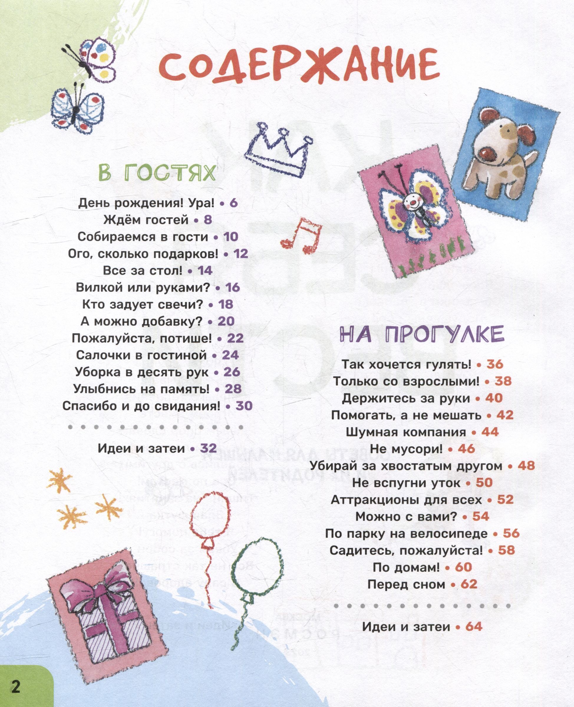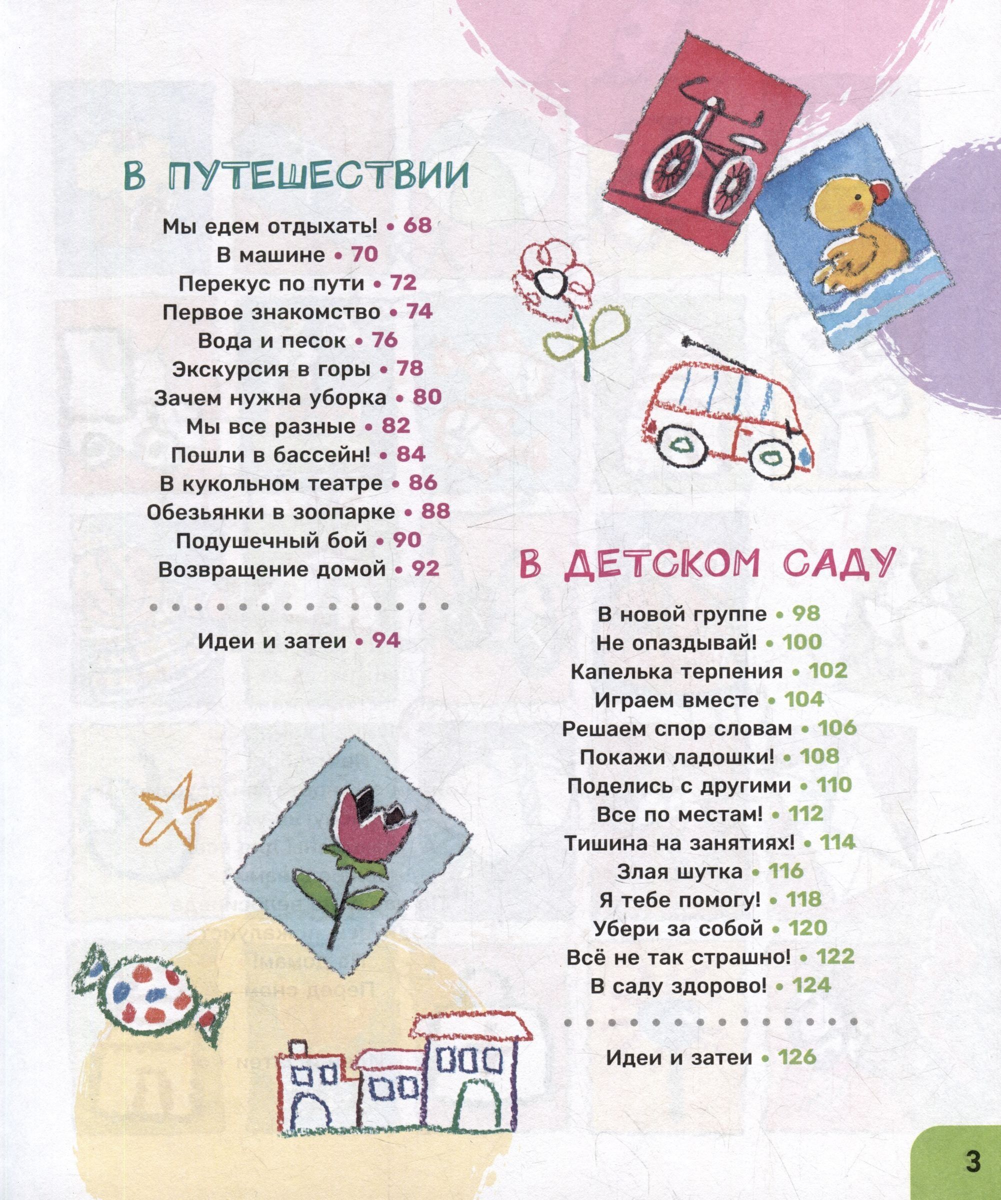 . Vērojot varoņus, bērns: — uzzinās, kā rīkoties tajā vai citā gadījumā; — apgūs etiķetes un piesardzības pamatprincipus; — sāks saprast citu bērnu uzvedības īpatnības. Katrā izvērsumā ir jautājumi bērniem un padomi pieaugušajiem, kā arī tēmas tālākai sarunai ar bērnu par sarežģītām situācijām. Īpaša sadaļa "Idejas un aktivitātes" katras nodaļas beigās ir veltīta spēlēm, rotaļām un vienkāršām receptēm, ko bērni var pagatavot ar pieaugušo palīdzību.