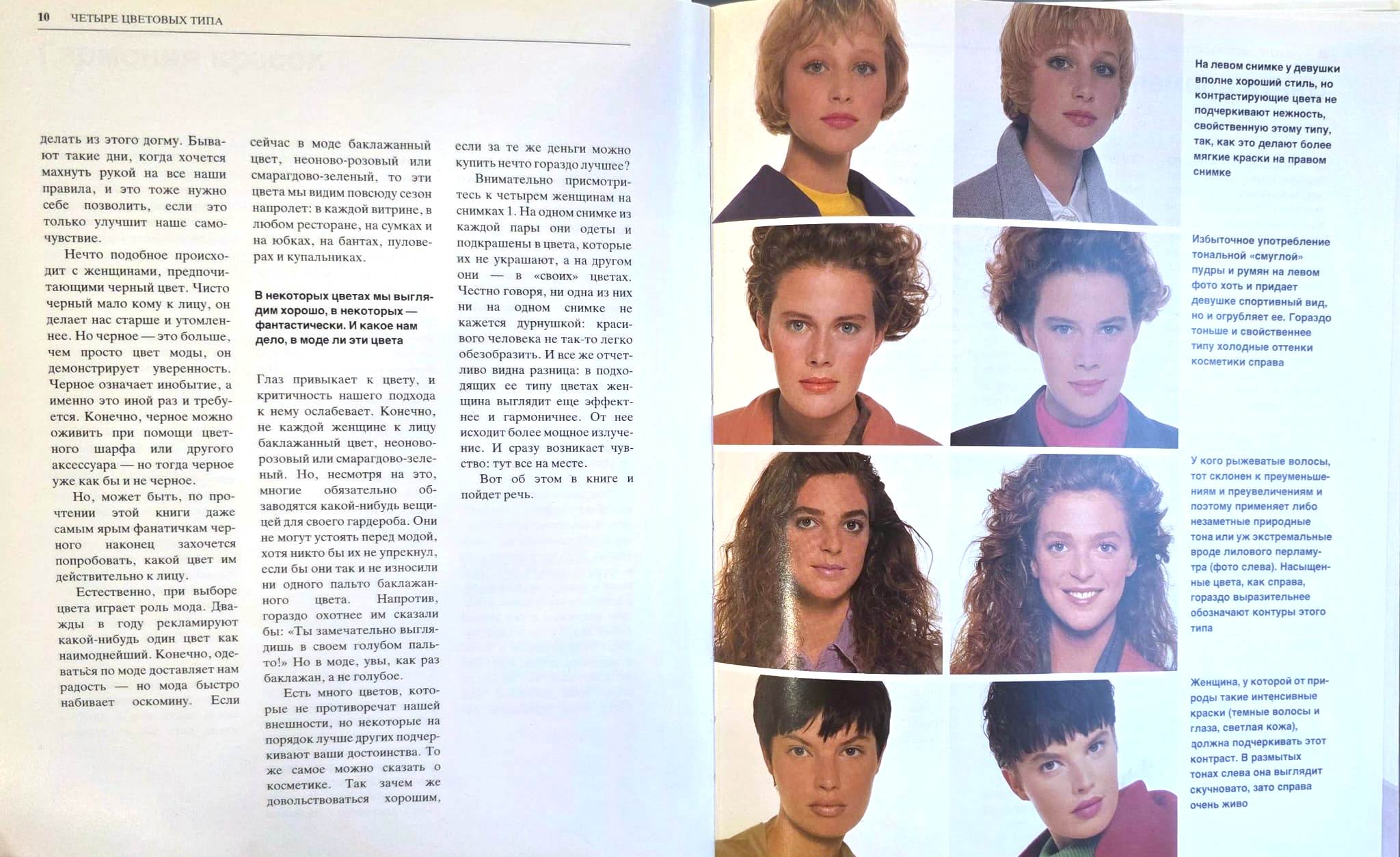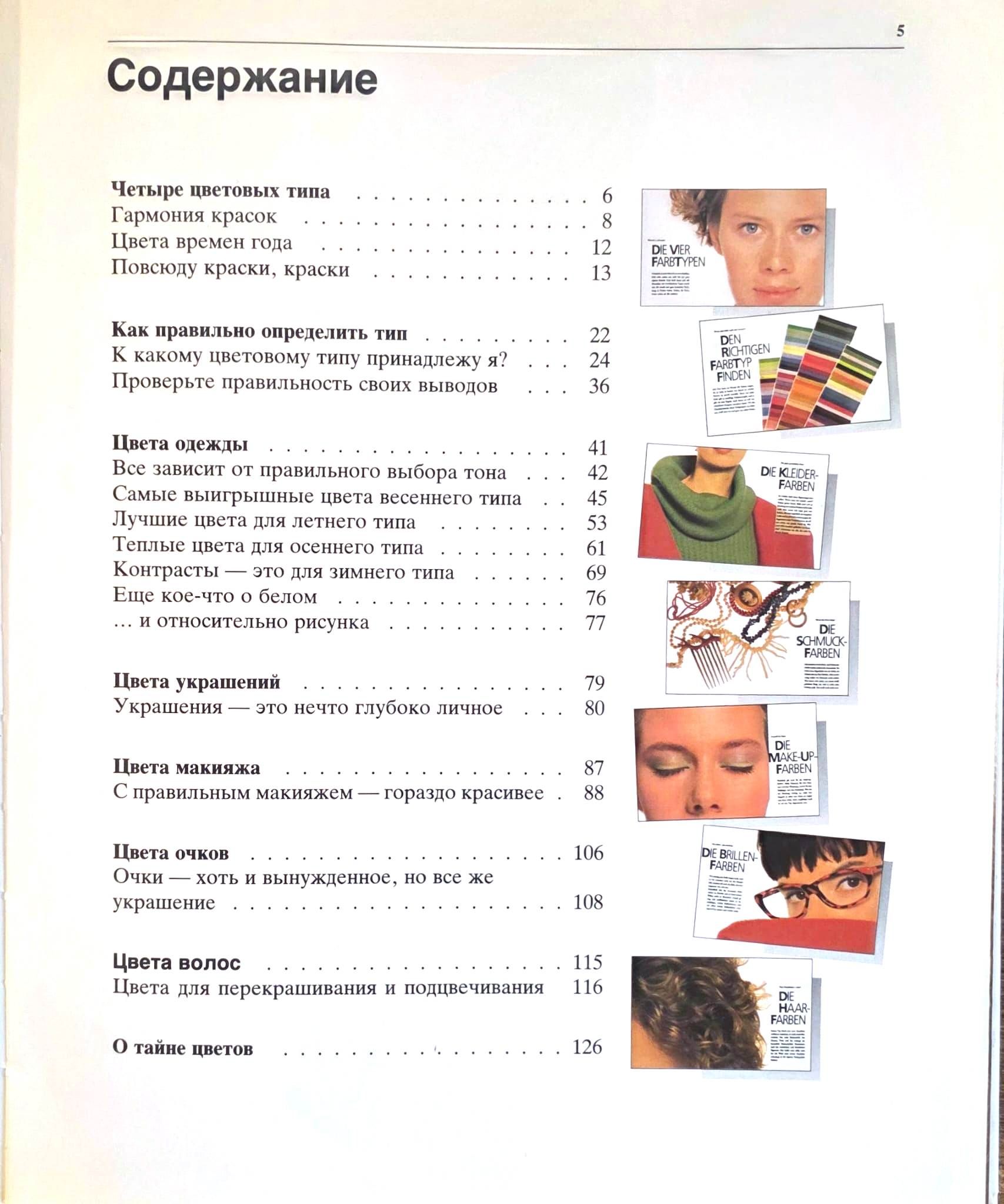 Runājot par modi, šī grāmata sniedz padomus par pamata garderobes krāsu izvēli un iesaka konkrētas krāsu kombinācijas. Šajās nodaļās ir iekļauti detalizēti ieteikumi kosmētikas, matu krāsas, briļļu un rotaslietu izvēlei.