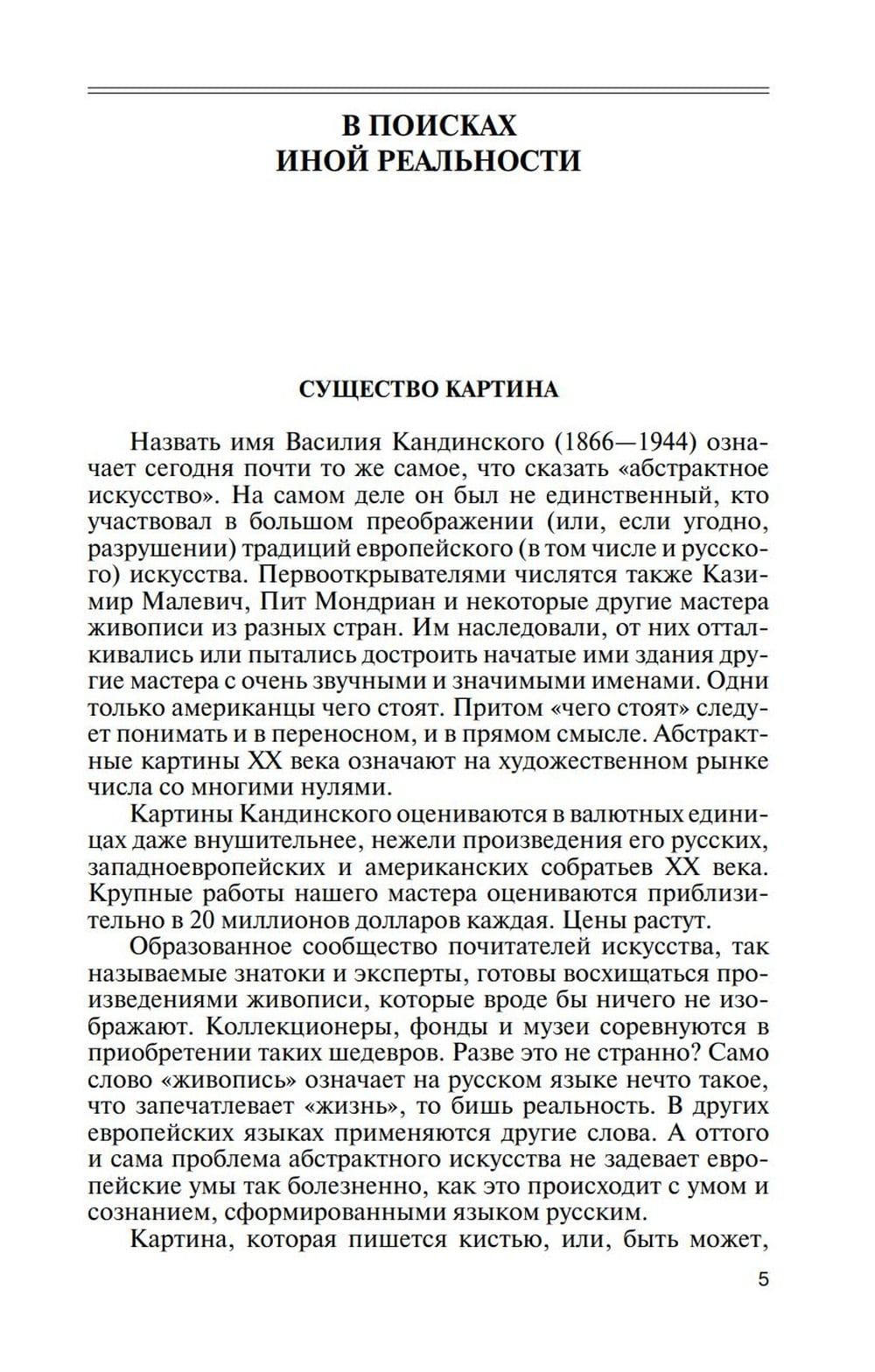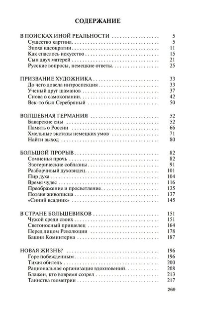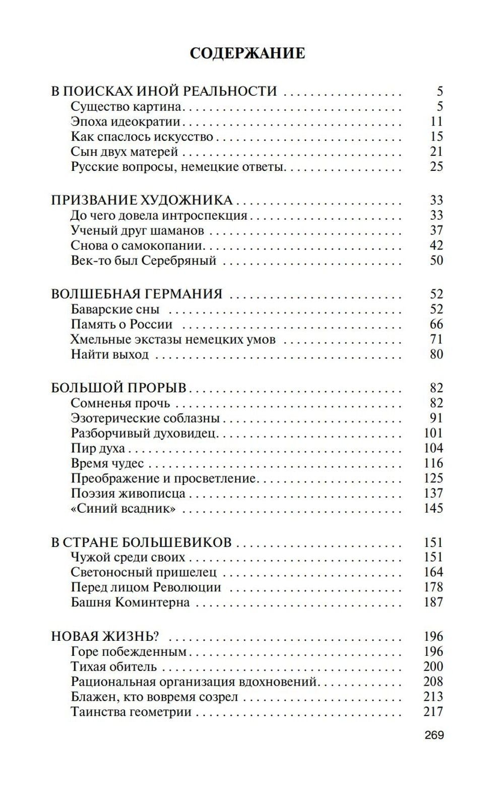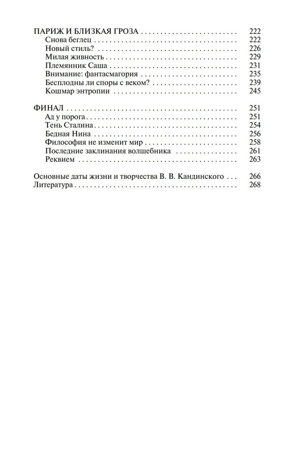 Šī grāmata piedāvā psiholoģisku portretu par mākslinieku, kurš bija iegrimis šaubās un meklējumos, iekšējos konfliktos, sarežģītās attiecībās un debatēs ar savu laiku un laikabiedriem. Meistara dzīves dramatiskie pavērsieni bija tādi, ka šķita, ka viņš ir nodzīvojis vairākas dzīves. Grāmatā lasītājs atklās daudzveidīgu mākslinieku un vēsturisku personu plejādi, ar kuriem Kandinskim bija dažādas attiecības — sākot no gleznotājiem no Krievijas un Vācijas līdz vadošajiem mūziķiem un dzejniekiem no dažādām valstīm, kā arī 20. gadsimta sākuma un pirmās puses domātājiem un zinātniekiem.