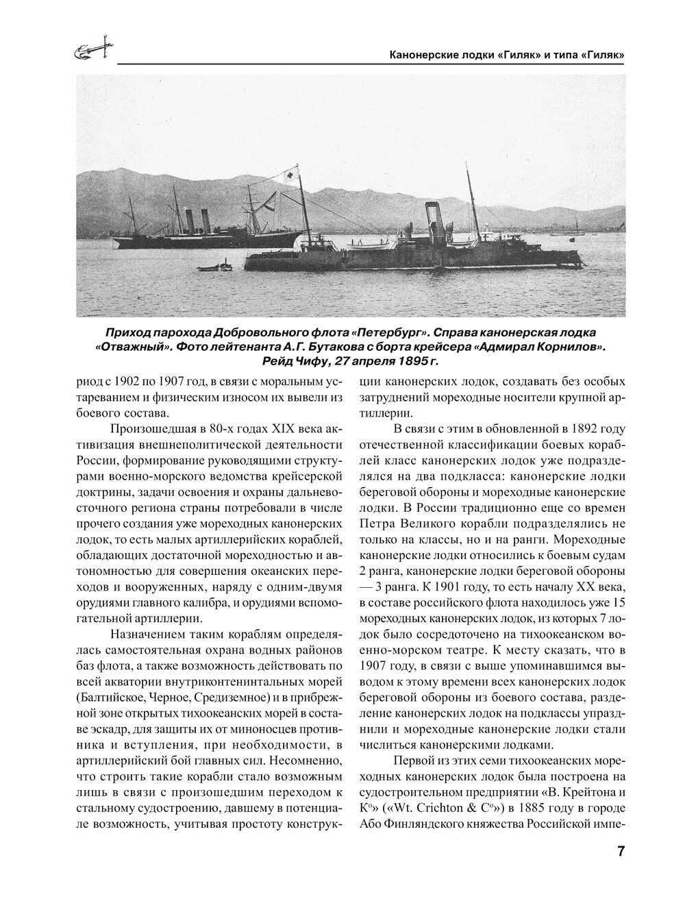 "Giļjaks" (tā krievu kolonisti sauca Sahalīnas pamatiedzīvotājus) bija pirmais Krievijas Jūras kara flotes liellaivas kuģis, kas spēja darboties ne tikai upēs, bet arī okeāna ūdeņos. Šis lielgabalu kuteris kļuva slavens ar savu varonīgo dalību ķīniešu cietokšņa Taku šturmēšanā 1900. gadā Haihe upes grīvā ehetuānu sacelšanās apspiešanas laikā. 1904. gadā kuģis kā peldošā baterija piedalījās Port Artūra aizsardzībā, atvairot daudzus japāņu iznīcinātāju un laupītāju uzbrukumus. Pēc kara radītā "Gijļak" tipa liellaivu sērija bija ar seklūdens iegrimi un ātras darbības artilēriju, un tās bija īpaši paredzētas kalpošanai Amūras upes lejtecē (no ietekas līdz Habarovskai) un Krievijas impērijas Tālo Austrumu piekrastes aizsardzībai. Savus nosaukumus tās ieguva, pieminot Krievijas-Japānas karā bojā gājušos liellaivas - "Gijļaks", "Sivuč", "Bebrs" un "Koreec". Tomēr visas tās galu galā pievienojās Baltijas flotei. Pirmajā pasaules karā "Gijaks" piedalījās kaujas operācijās, un "Sivuch" apkalpes varoņdarbs nevienlīdzīgā cīņā ar vācu kaujas kuģiem "Posen" un "Nassau", ko iesauca par "Baltijas Varjagu", tāpat kā leģendārā kreisera varoņdarbs iegāja Krievijas flotes vēsturē kā viens no spilgtākajiem drosmes un pašaizliedzīgas militārā pienākuma izpildes piemēriem.Slavenā flotes vēsturnieka jaunajā grāmatā pirmo reizi visos sīkumos atjaunota lielgabala kājnieku kutera "Gijļaks" un tāda paša nosaukuma liellaivu sērijas izveides, dienesta un kaujas izmantošanas vēsture. Izdevums ir ilustrēts ar daudziem ekskluzīviem zīmējumiem un fotogrāfijām.