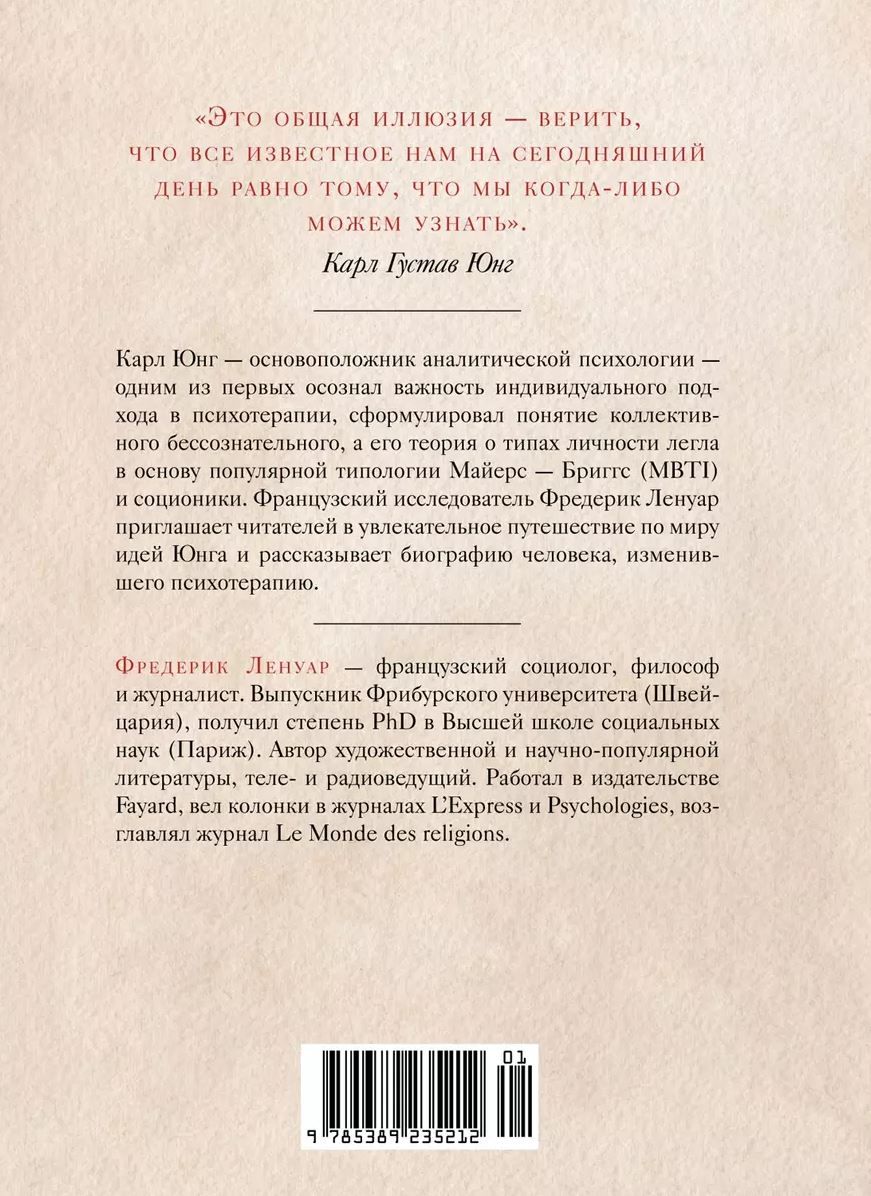 Psihiatrs, kuru fascinēja austrumu filozofija un okultisms, Freida biedrs, kurš pārtrauca attiecības ar savu skolotāju Karlu Gustavu Jungu, pārdomāja psihiatriju un izvēlējās ārstēt cilvēku, nevis simptomus. Savas garās, notikumiem bagātās dzīves laikā Karls Jungs attīstīja analītiskās filozofijas virzienu, ko plaši izmanto mūsdienu psihoterapeiti, un formulēja kolektīvās zemapziņas, arhetipu un individuācijas jēdzienus. Šīs grāmatas lappusēs franču filozofs un žurnālists Frederiks Lenoirs rada spilgtu, dzīvīgu Junga portretu ar visām viņa pretrunām: kompromisiem ar nacistiem, antisemītiskiem izteikumiem, laulības neuzticību. Jungs nebija perfekts, bet tieši tāpēc viņš spēja tik dziļi iekļūt cilvēka psihes noslēpumos.