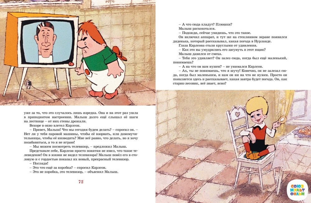Karlsons atkal ir ieradies! Astrīdas Lindgrēnas slavenās triloģijas par kazlēnu un Karlsonu otrajā grāmatā mazos lasītājus gaida jaunas smieklīgas varoņu palaidnības, kā arī tikšanās ar impozanto Bokas jaunkundzi. Burvīgs palaidnis ar dzenskrūvi mugurā tracina iespaidojamu mājkalpotāju, zog bulciņas neprasot un izliekoties par spoku. Spilgtie, no bērnības pazīstamie Bokas jaunkundzes, mazulīša un Karlsona tēli, kurus multfilmām veidojis mākslinieks Anatolijs Savčenko, lieliski papildina bērnu un pieaugušo iemīļotās Lindgrēnas pasaku stāstu.