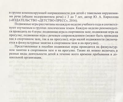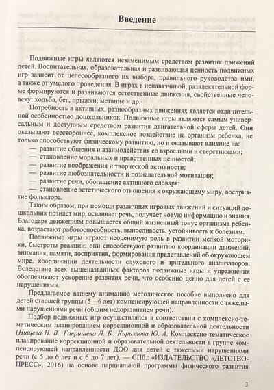 Metodiskajā rokasgrāmatā izklāstītas kustību spēles sporta zālē un pastaigā bērniem ar smagiem runas traucējumiem (vispārējā runas attīstības atpalicība) no 6 līdz 7 gadu vecumam, kas pieder kompensācijas orientācijas sagatavošanas grupai.