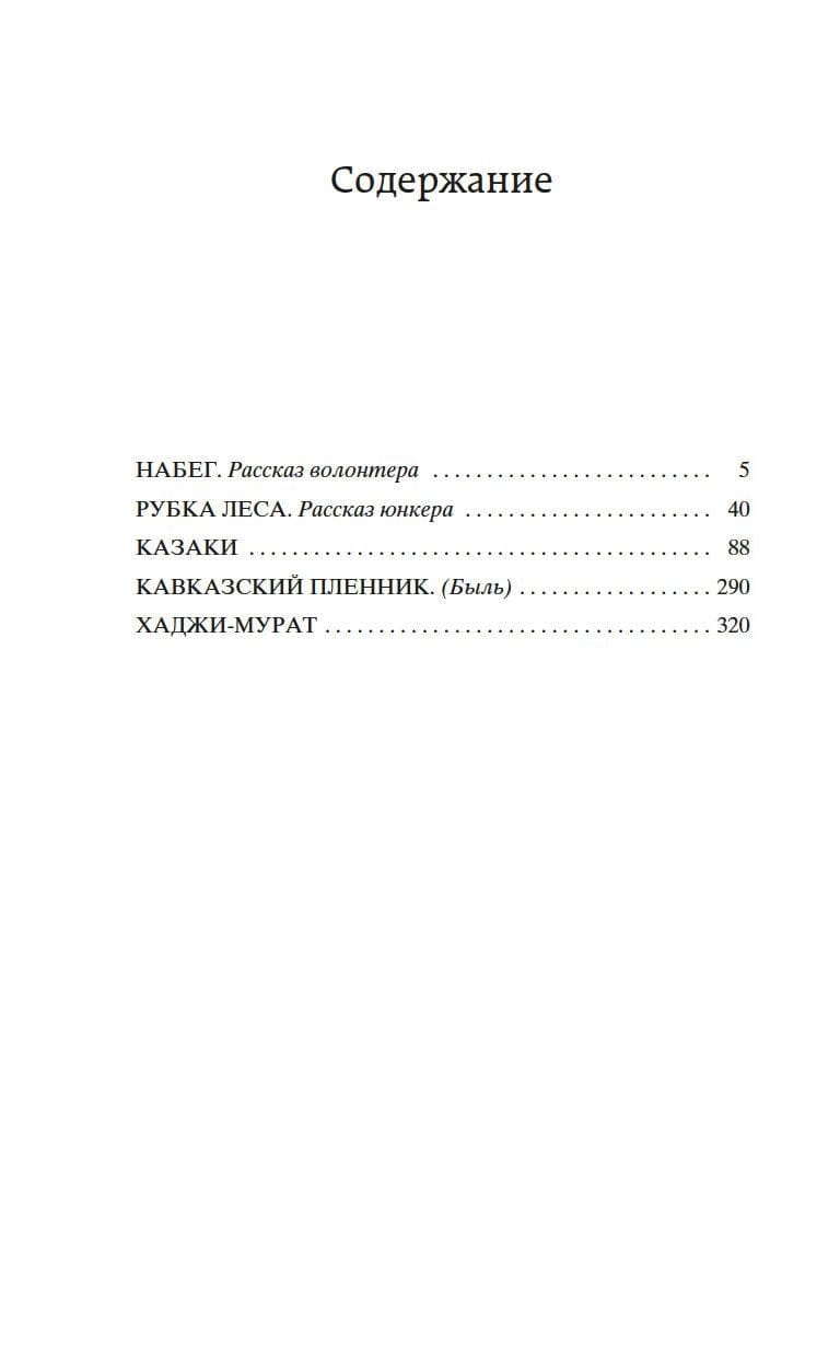 Izdevumā publicēti tā sauktie kaukāziešu darbi: Ļeva Tolstoja stāsti "Reids", "Malkas ciršana", "Kaukāza gūsteknis" un romāni "Kazaki" un "Hadži-Murat". Tie atspoguļoja rakstnieka iespaidus no trīs gadu dienesta Kaukāzā. 1851. gadā viņš tur devās pie sava vecākā brāļa Nikolaja, aktīvās armijas virsnieka, un gandrīz trīs gadus dzīvoja kazaku ciematā Tereka krastos. Stāstu "Kazaki" pamatoti dēvē par L. H. Tolstoja 1850. gadu galveno darbu, pie kura viņš ar pārtraukumiem strādāja 10 gadus (1853-1863). Stāstu "Hadži-Murats" viņš radīja savā pēdējā dzīves posmā, taču tā radošā vēsture sniedzas līdz 1850. gadiem: atskatoties atpakaļ, šķirstot atmiņas un pārlasot vecās dienasgrāmatas, Tolstojs svētī šo grūto un brīnišķīgo laiku - lielus pārbaudījumus un lielas atziņas.