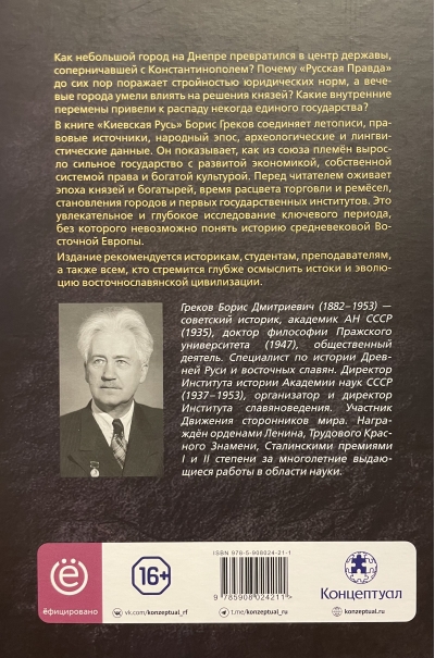Kā mazpilsēta Dņepras krastā kļuva par Konstantinopolei līdzīgas lielvaras centru? Kāpēc "Russkaja Pravda" (Krievu patiesība) joprojām pārsteidz ar savu tiesību normu skaidrību un kāpēc pilsētu padomes (večes) ietekmēja kņazu lēmumus? Kādas iekšējas pārmaiņas noveda pie kādreiz vienotās valsts sabrukuma? Grāmatā "Kijevas Rusa" Boriss Grekovs apvieno hronikas, juridiskos avotus, tautas eposus, arheoloģiskos un lingvistiskos datus. Viņš parāda, kā cilšu savienība pārtapa par spēcīgu valsti ar attīstītu ekonomiku, savu tiesību sistēmu un bagātu kultūru. Lasītājs atdzīvojas kņazu un karotāju laikmetā, tirdzniecības un amatniecības uzplaukuma, pilsētu un pirmo valsts institūciju rašanās laikā. Šis ir aizraujošs un ieskatu sniedzošs pētījums par svarīgu periodu, kas ir būtisks viduslaiku Austrumeiropas vēstures izpratnei. Šī publikācija ir ieteicama vēsturniekiem, studentiem, skolotājiem un ikvienam, kurš vēlas dziļāk izprast Austrumslāvu civilizācijas izcelsmi un attīstību.