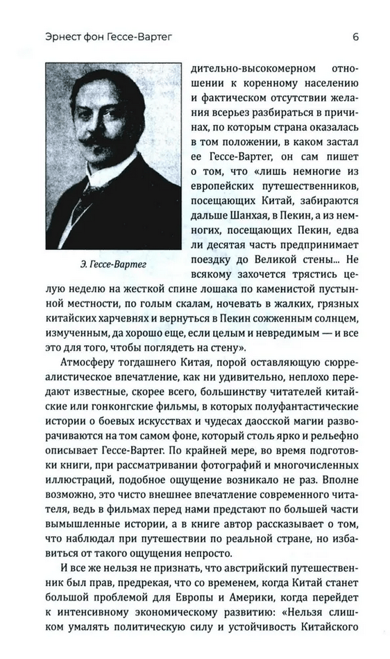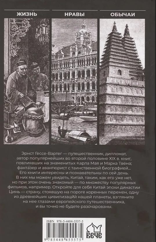 Ernsts Hese-Vārtegs bija ceļotājs, diplomāts, 19. gadsimta otrās puses populārāko grāmatu autors, kas ietekmēja slavenos Karlu Meju un Marku Tvenu; sapņotājs un piedzīvojumu meklētājs ar noslēpumainu biogrāfiju... Viņa grāmatas ir interesantas un informatīvas līdz pat šai dienai. Tajās mēs varam redzēt, piemēram, Ķīnu, kādu tā mūsdienās vairs nepastāv, bet vienlaikus mums ļoti pazīstamu no daudzām populārām filmām. Atklājiet Ķīnu Cjiņu dinastijas laikā – valsti uz radikālu pārmaiņu sliekšņa, vienu no vecākajām civilizācijām uz mūsu planētas, paskatieties uz to ar eiropiešu ceļotāja acīm, un jūs noteikti nebūsiet vīlušies.
