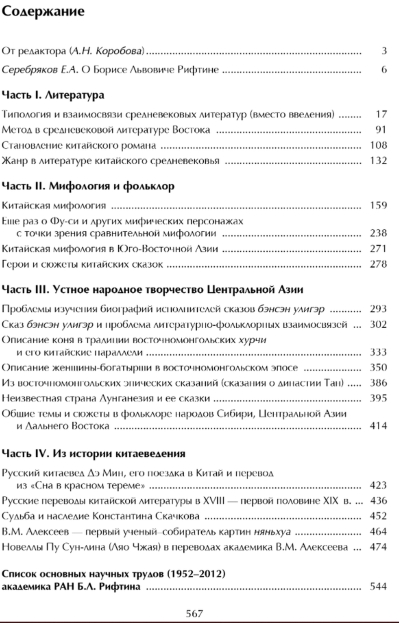 Šajā atkārtotajā izdevumā (1. izd.: Maskava, IFES RAS, 2022) ir iekļauti izcilā krievu sinologa, Krievijas Zinātņu akadēmijas akadēmiķa B. L. Riftina (1932–2012) atlasītie darbi, kas atspoguļo autora galvenās pētījumu jomas kā sinologam, literatūras pētniekam un folkloristam.